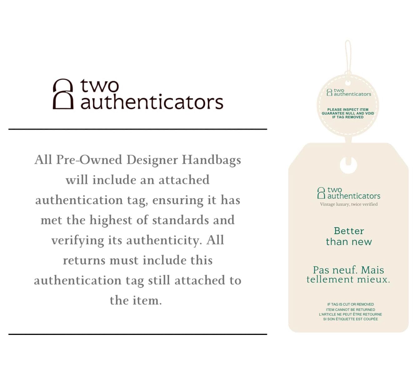Your purchase of a Pre-Owned Designer Handbag will include an attached authentication tag, ensuring it has met the highest of standards and verifying its authenticity. All returns must include this authentication tag still attached to the item.