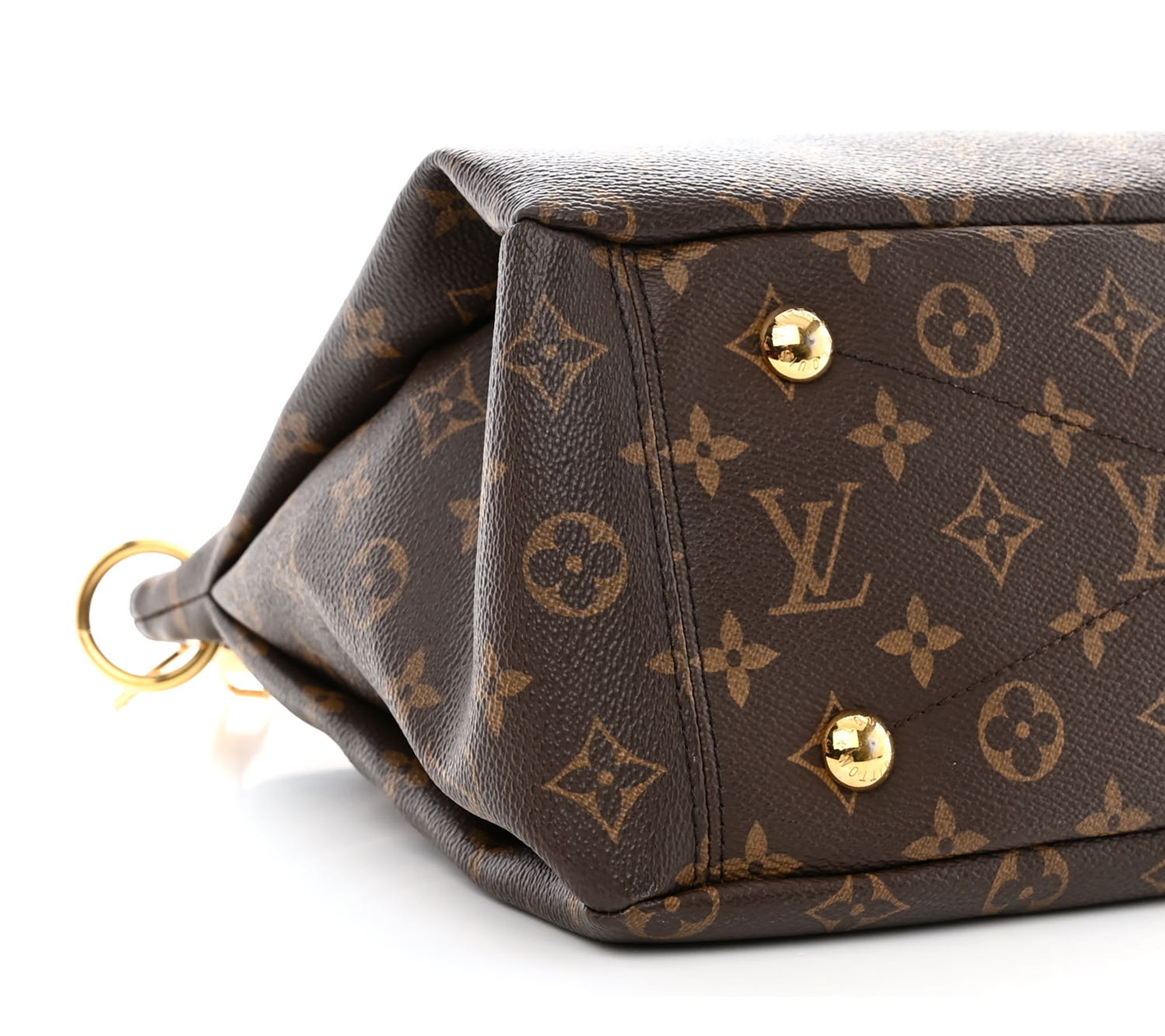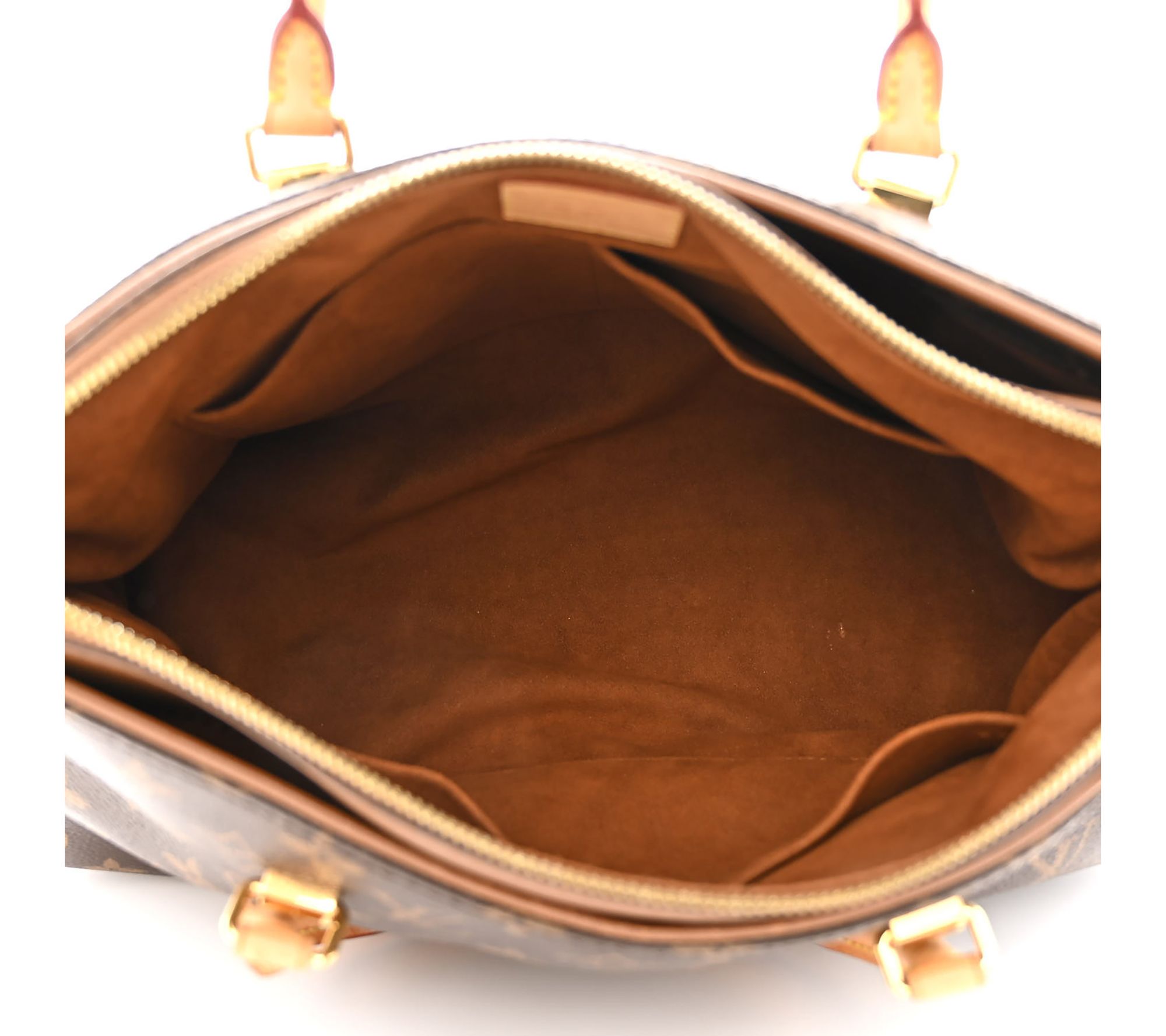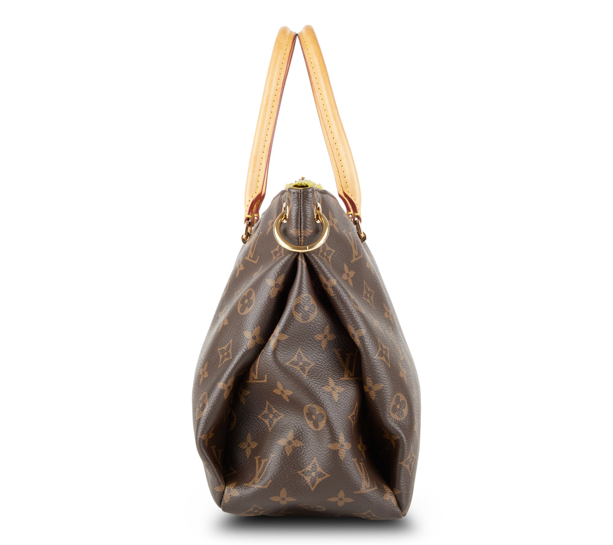 Elevate your style with this pre-owned Louis Vuitton Pallas MM Monogram Brown tote. Its iconic monogram design pairs effortlessly with any outfit, whether you're heading to the office or a brunch date. From Louis Vuitton.