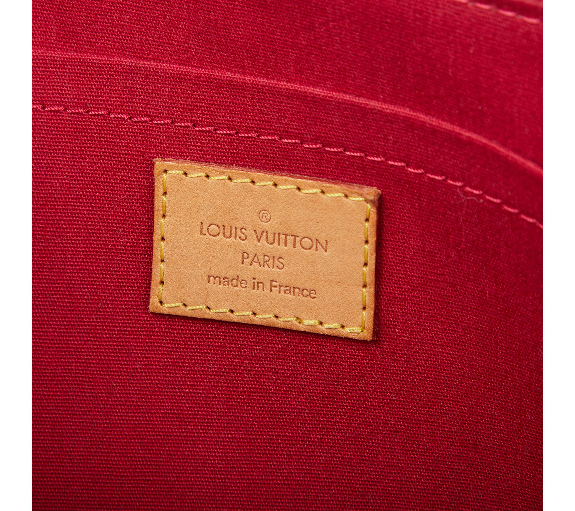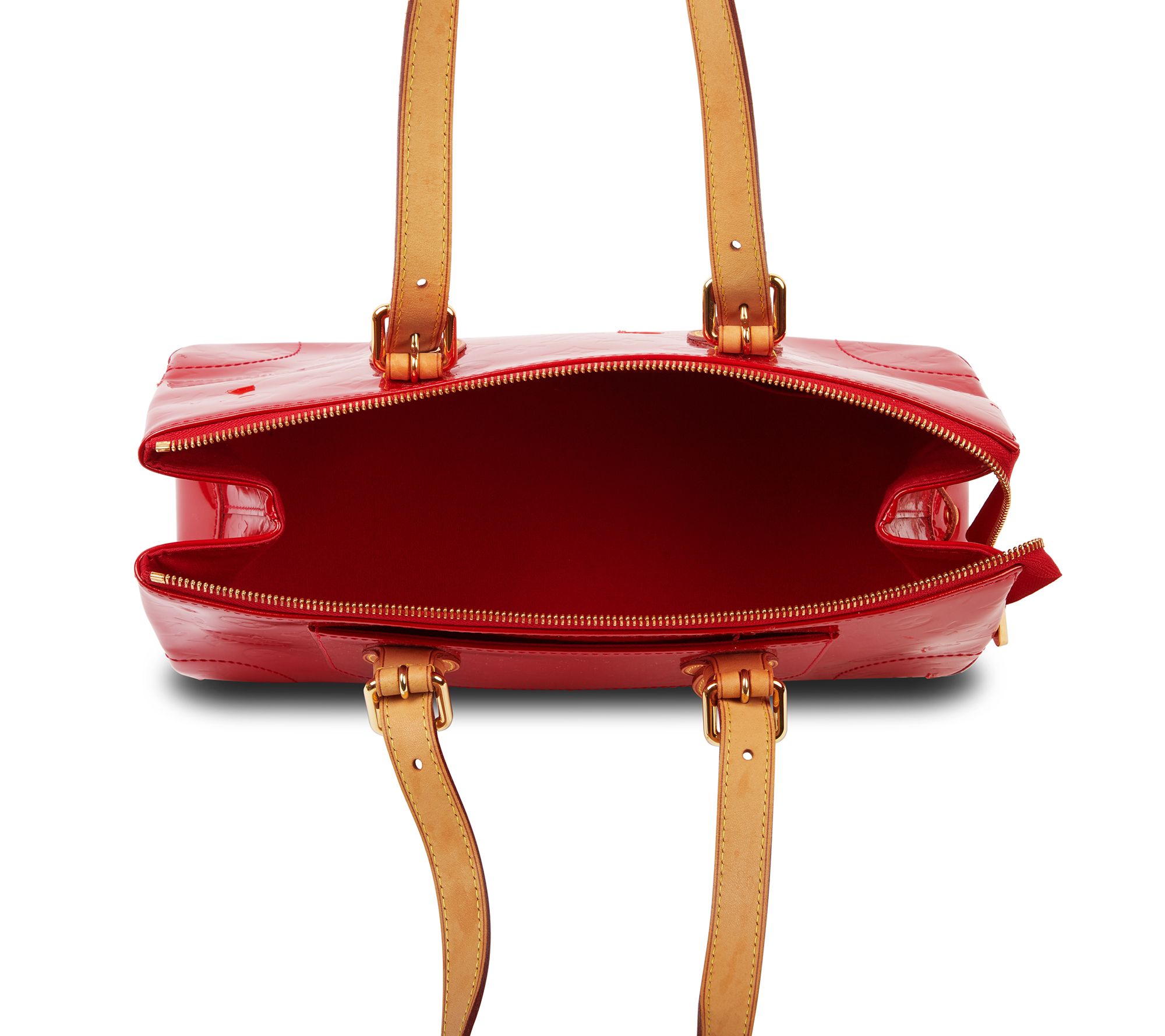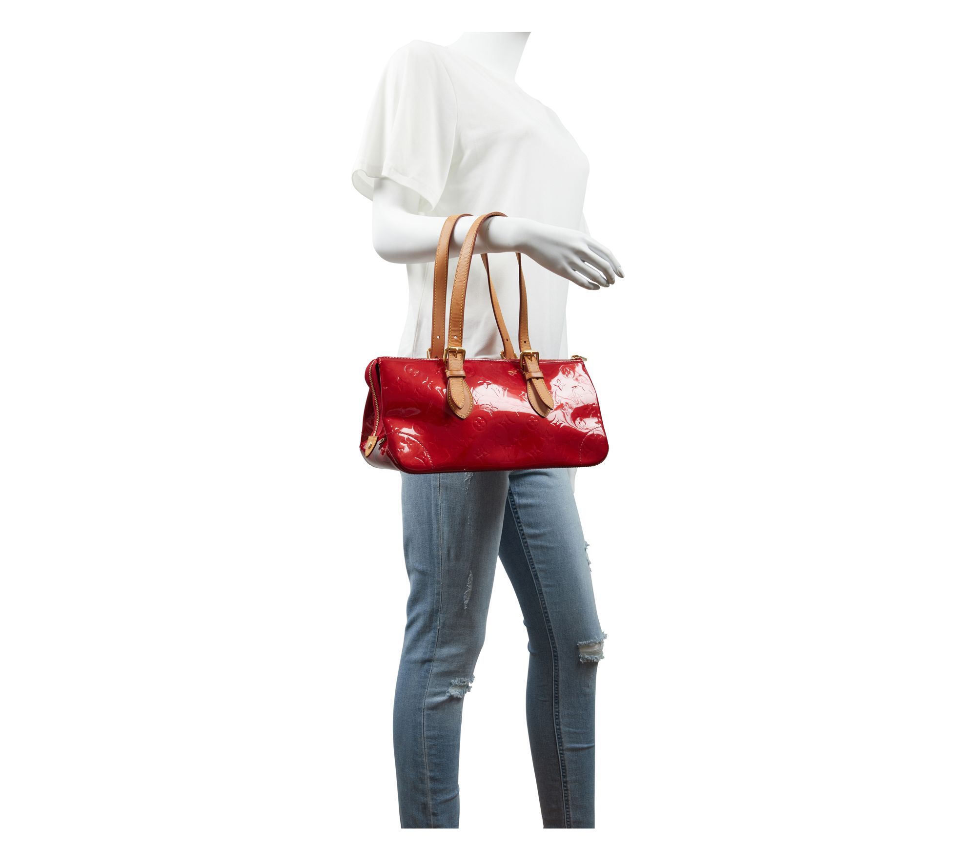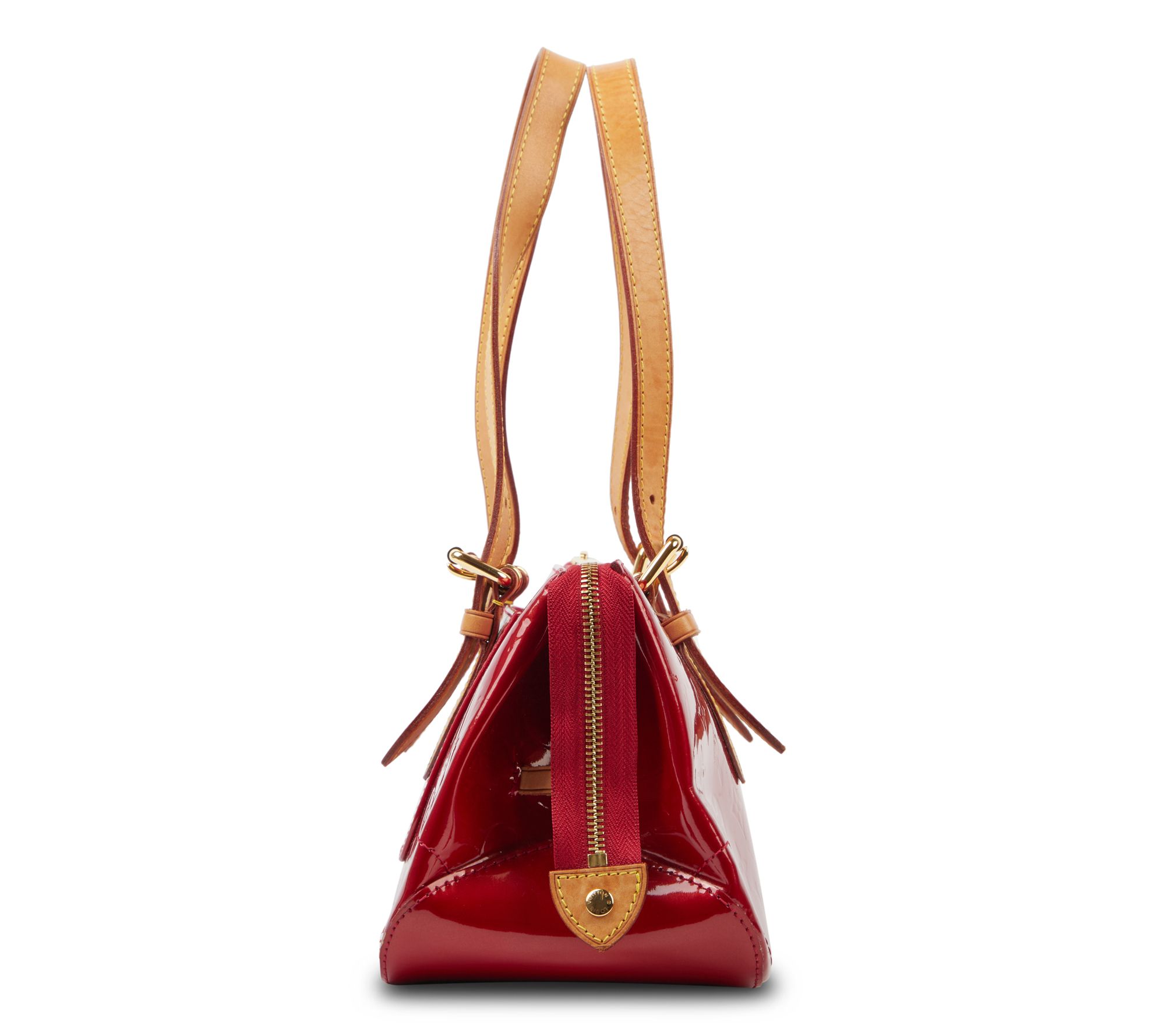 The Louis Vuitton Rosewood Avenue Monogram shoulder bag in red Vernis leather combines chic elegance with practicality. Its compact design is spacious enough for all your essentials, while the vachetta cowhide flat leather strap top handles and an exterior back slip pocket add both style and function. From Louis Vuitton.