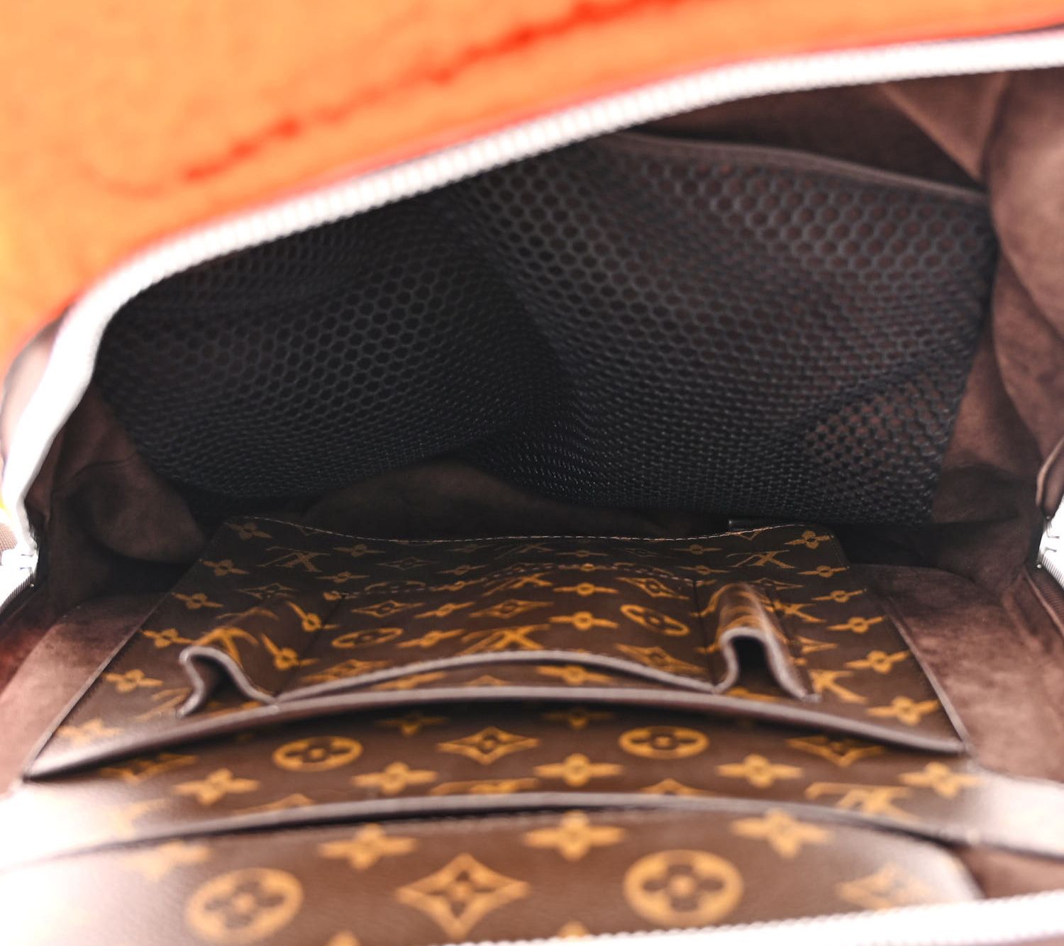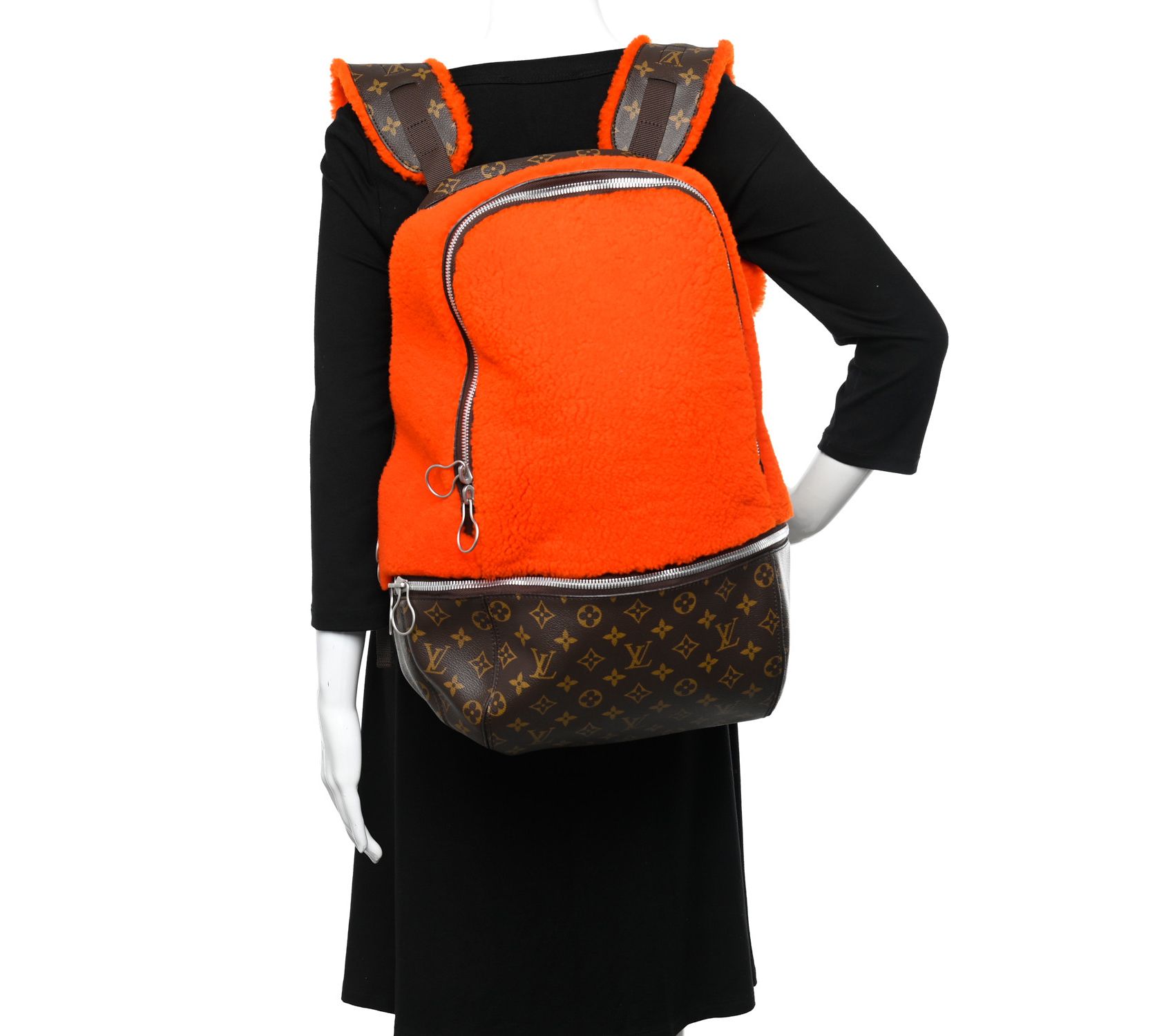 Turn heads with this pre-owned Louis Vuitton Shearling Monogram Fleece Pack in Orange. Crafted from monogram coated canvas and bright orange shearling fleece for a chic look, it combines practicality with refined luxury. From Louis Vuitton.
