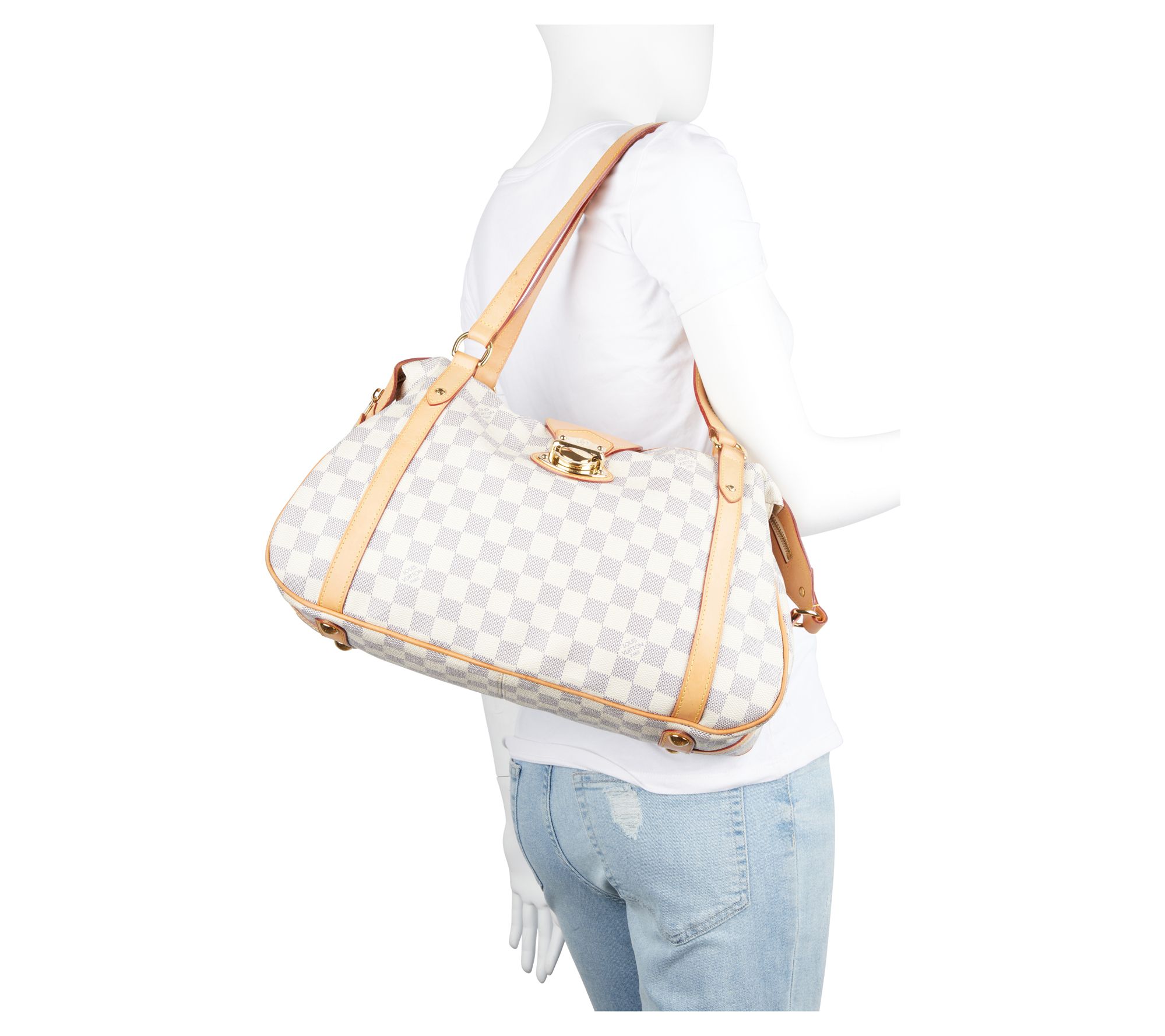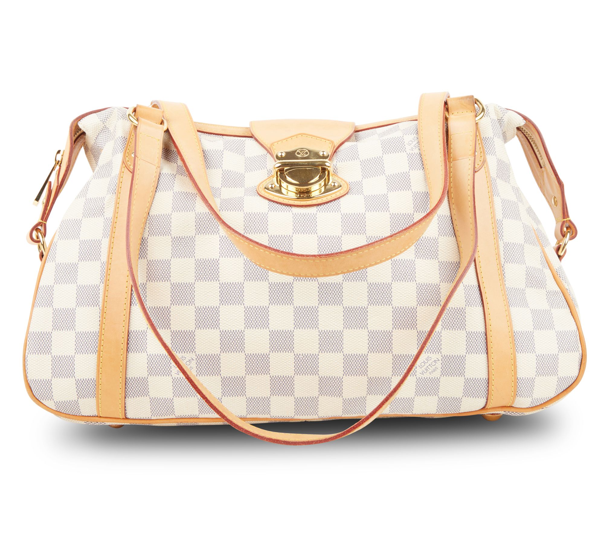 Pair elegance with practicality and wander through the city with timeless sophistication. A stand-out feature of this pre-owned Louis Vuitton, the white damier azur pattern is a charming touch to complement your favorite ensembles. This shoulder bag offers versatile use for relaxed days or social evenings out. From Louis Vuitton.