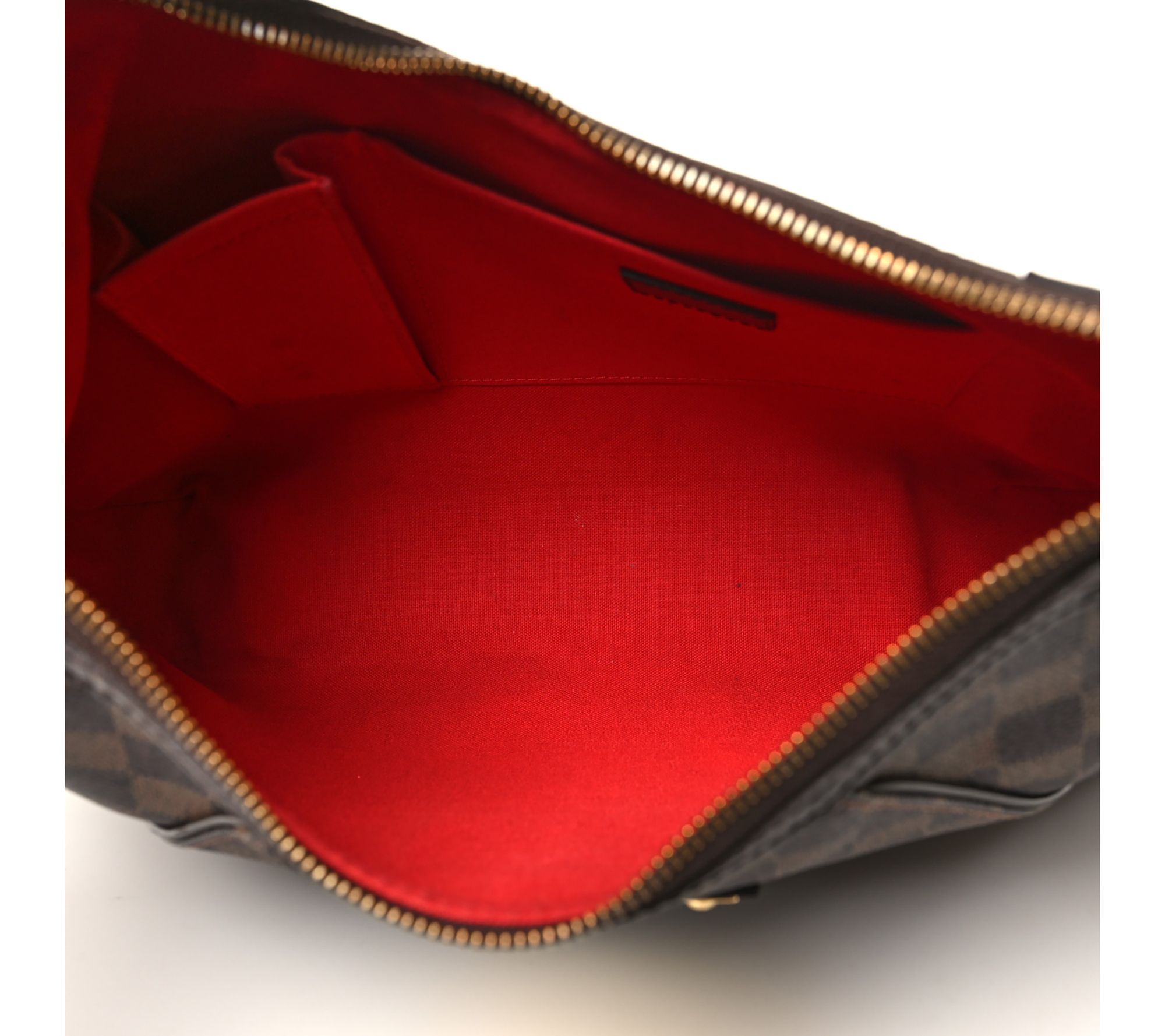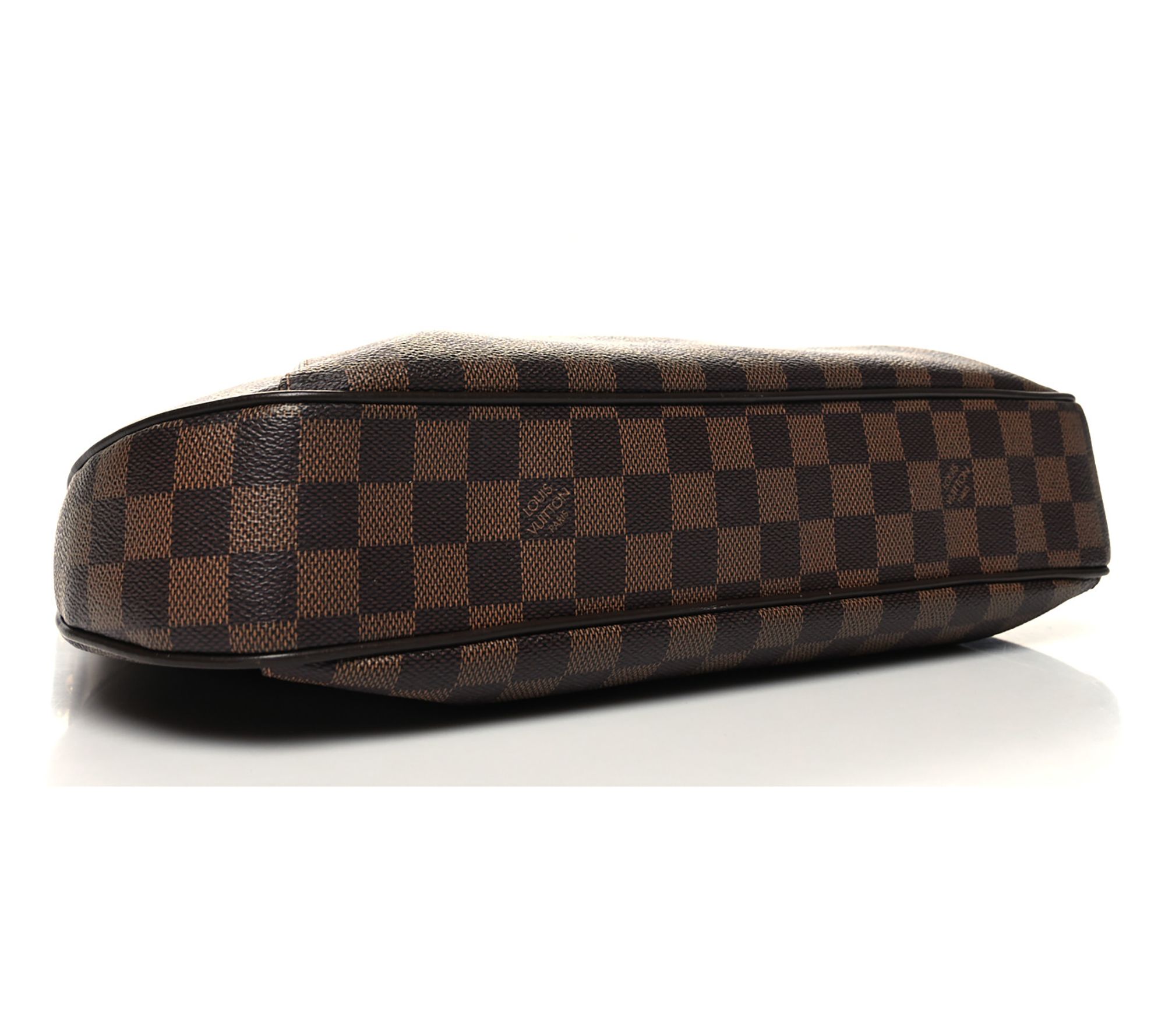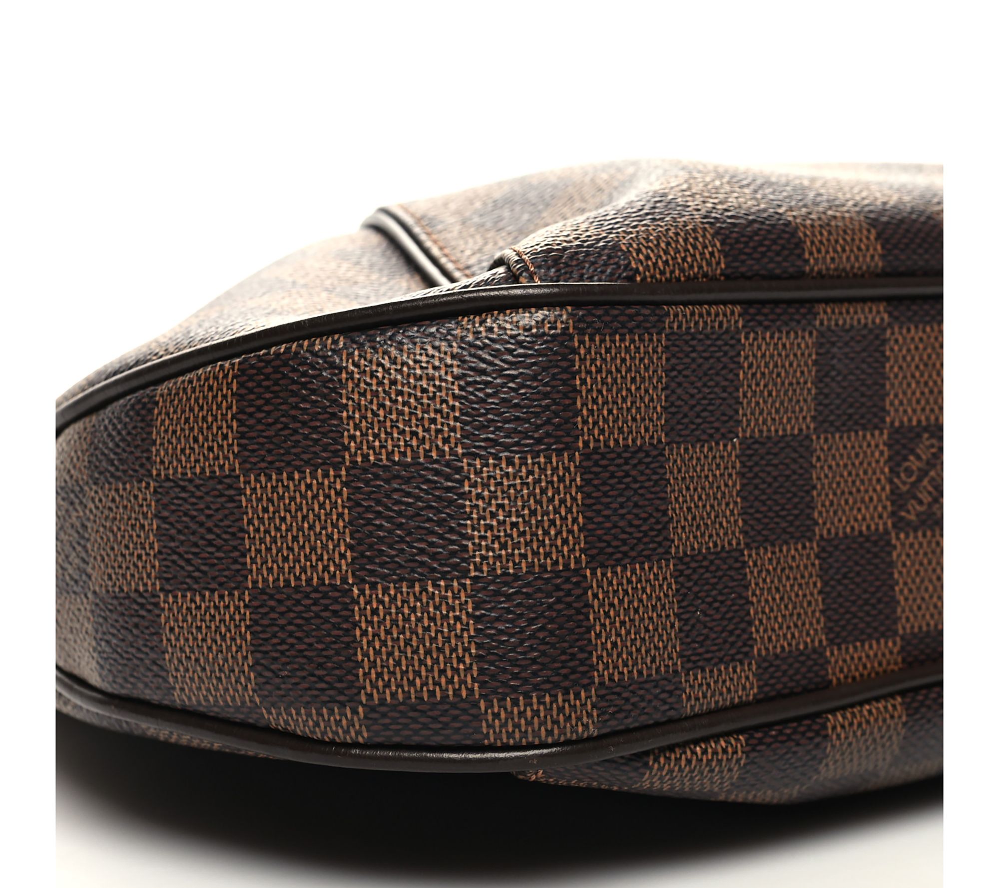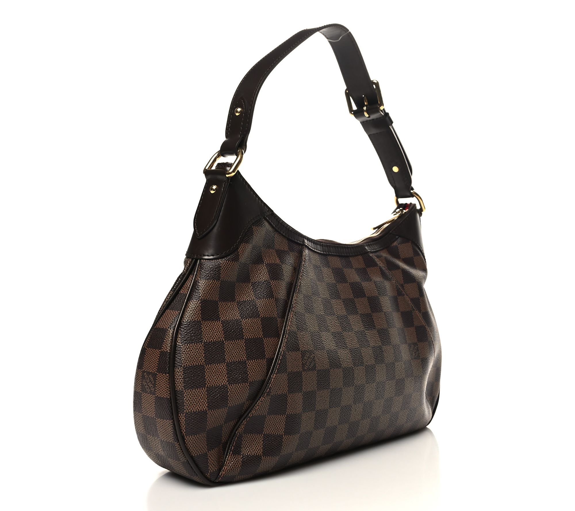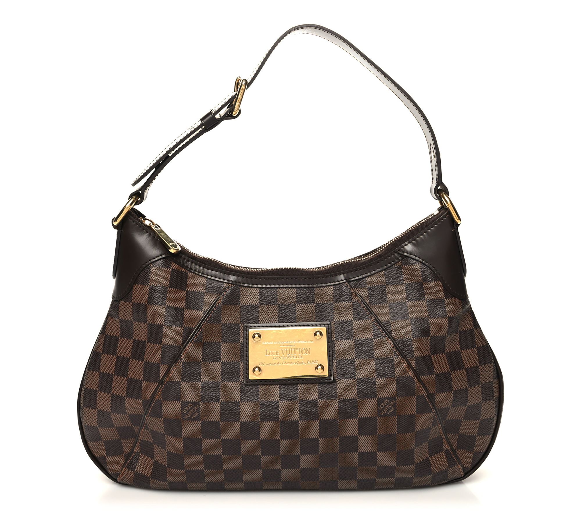 This pre-owned Louis Vuitton Thames GM Damier Ebene shoulder bag blends sophistication and versatility. With its sleek design and single strap, it complements any outfit while keeping your essentials organized with two inside slip pockets. From Louis Vuitton.
