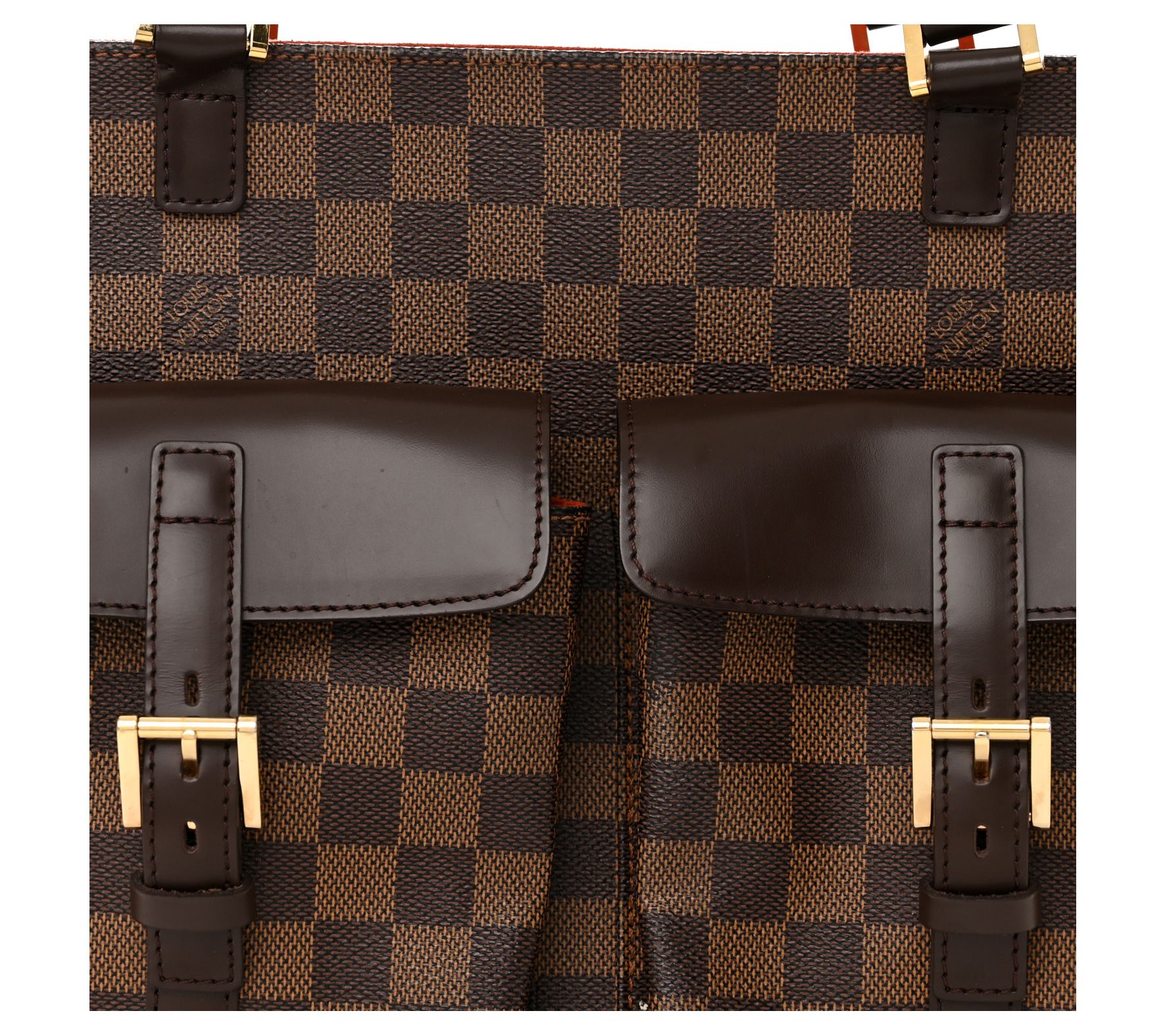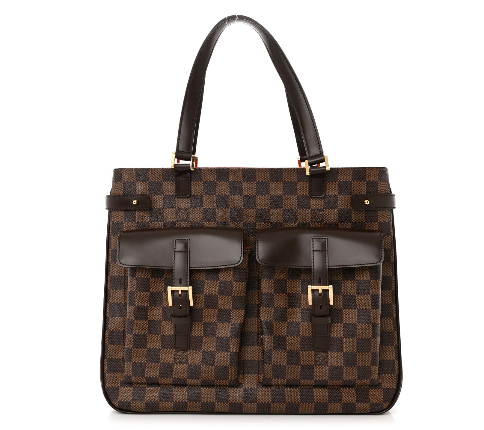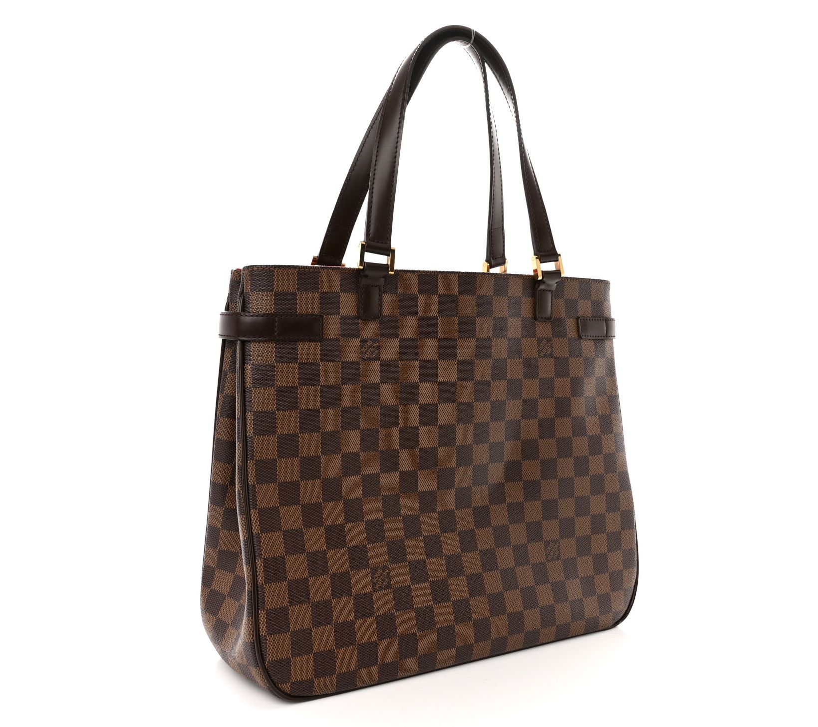 Experience the luxury of a pre-owned Louis Vuitton Uzes tote. This spacious bag features a double handle design and a stylish goldtone hardware, perfect for everyday use. The brown Damier Ebene coated cotton offers both durability and elegance. From Louis Vuitton.