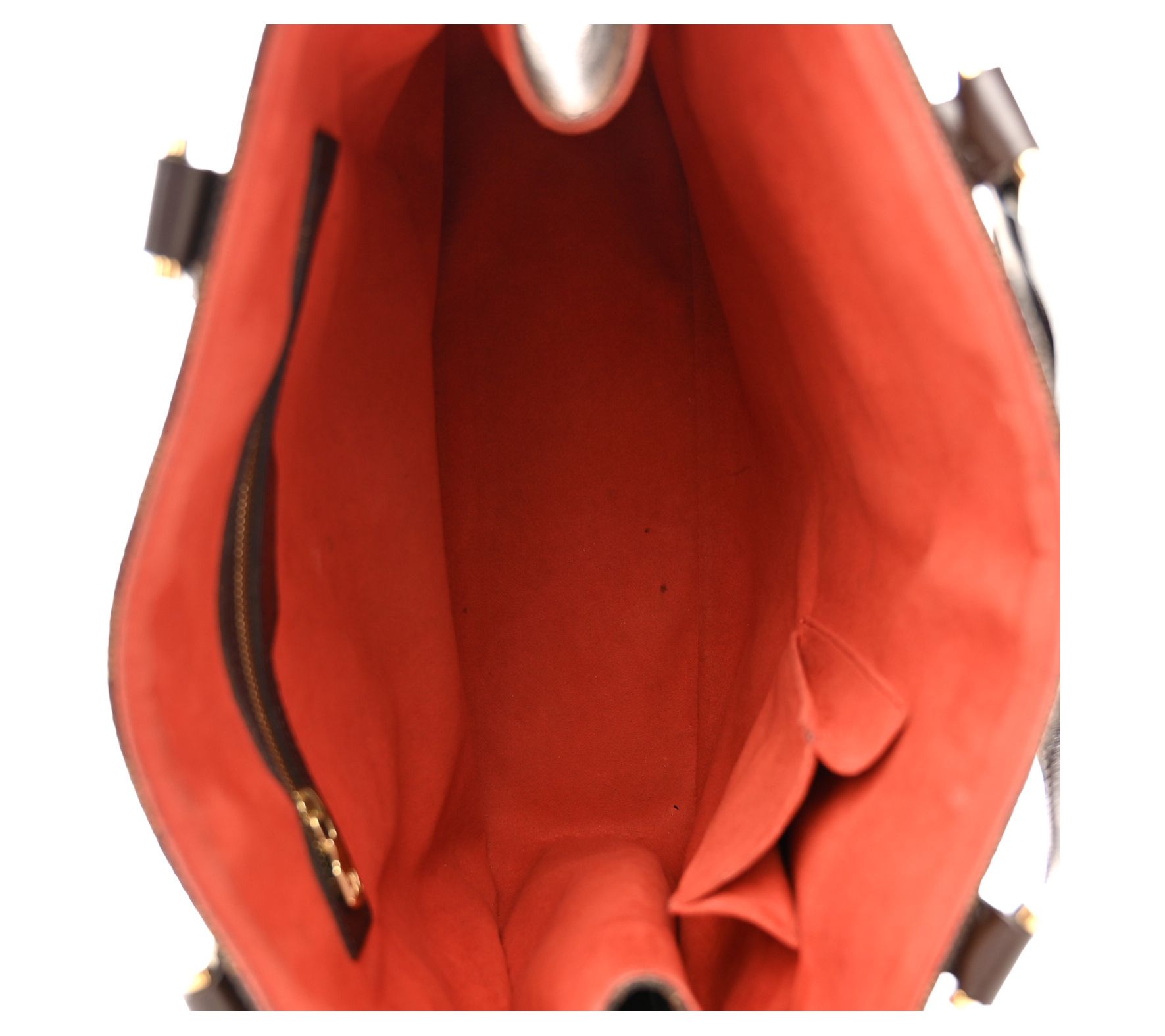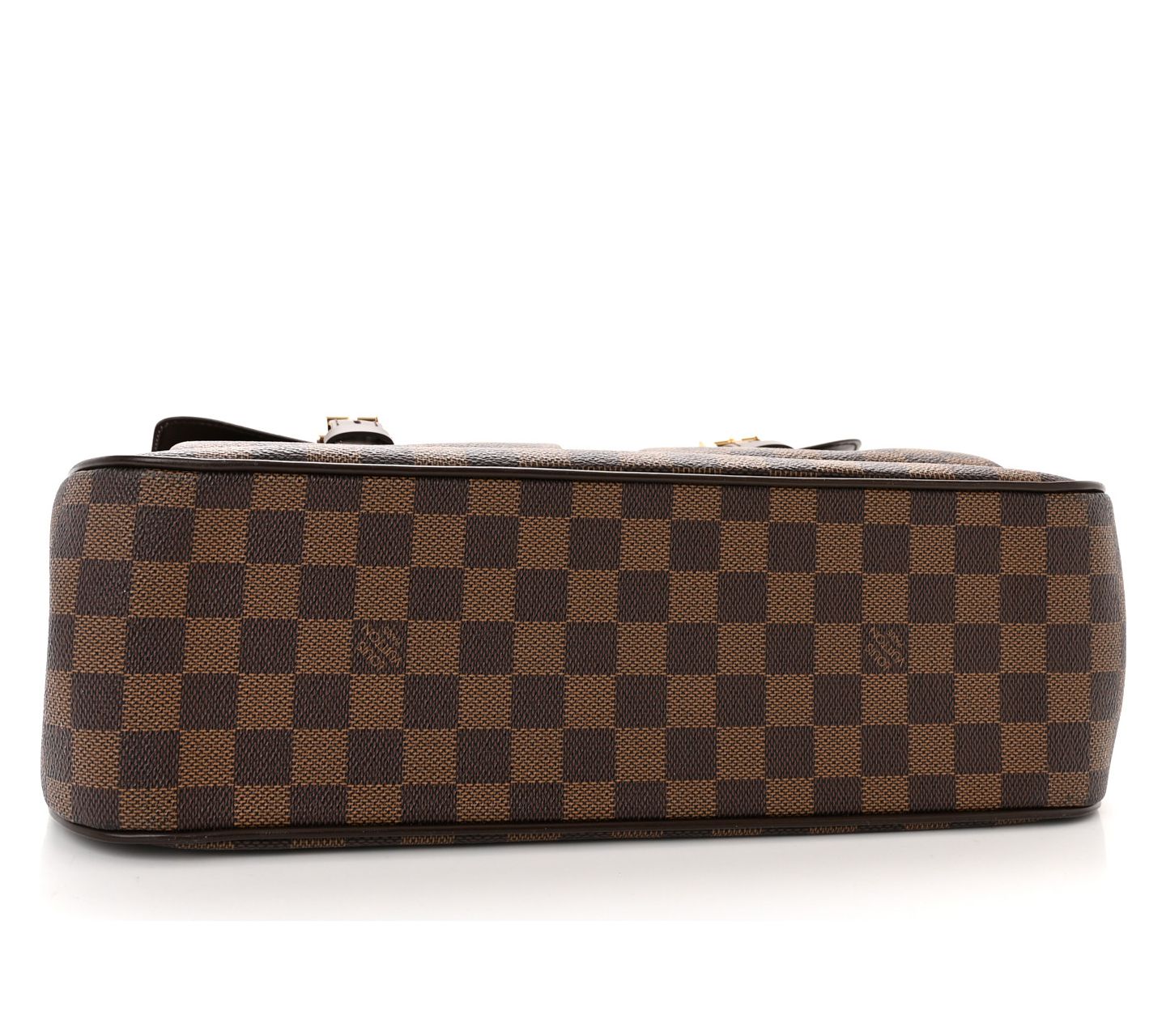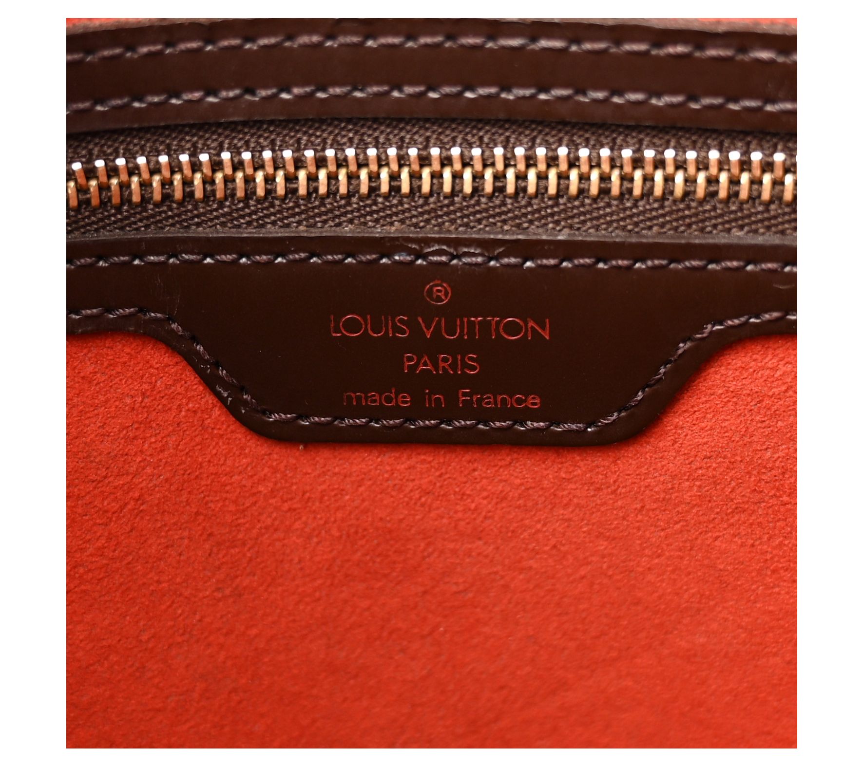 Experience the luxury of a pre-owned Louis Vuitton Uzes tote. This spacious bag features a double handle design and a stylish goldtone hardware, perfect for everyday use. The brown Damier Ebene coated cotton offers both durability and elegance. From Louis Vuitton.