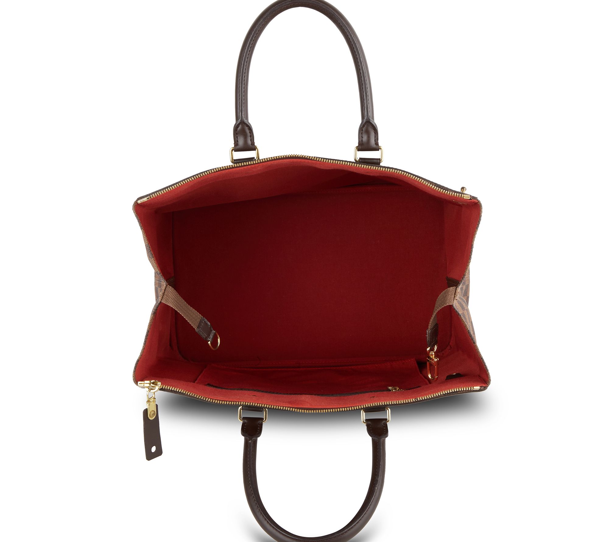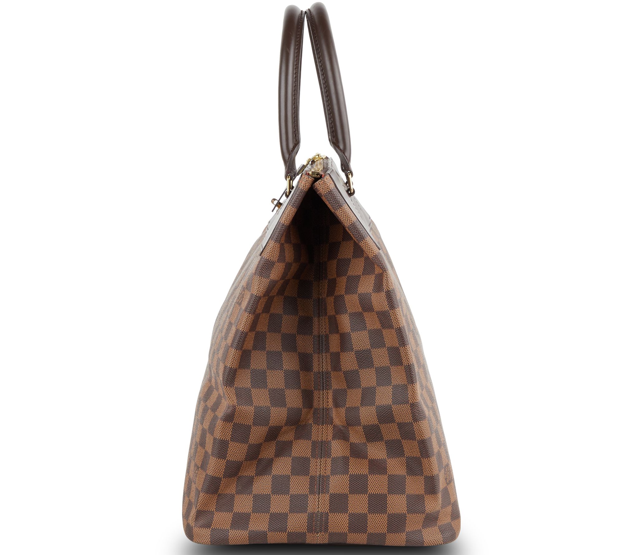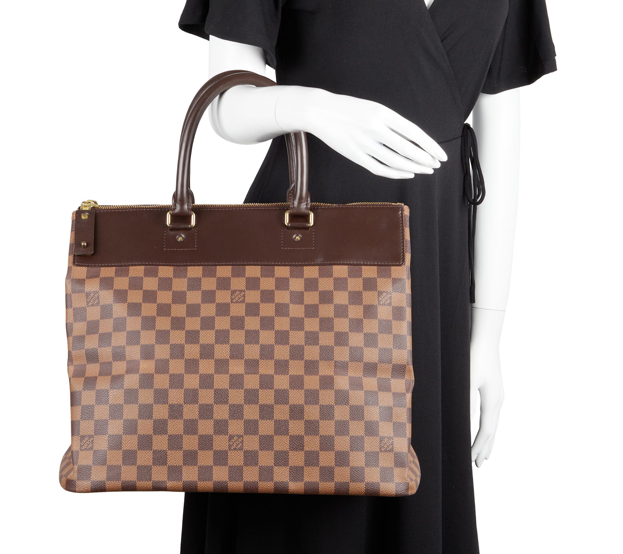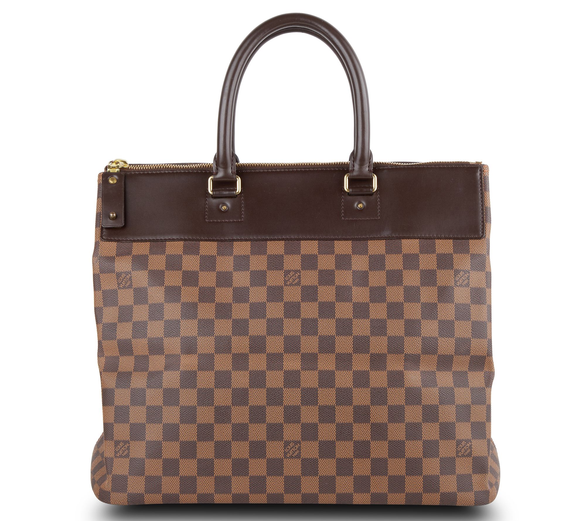 Elevate your look with this chic pre-owned Brown West End Damier Ebene PM bag featuring a convenient double handle, iconic design, and a roomy interior. From Louis Vuitton.
