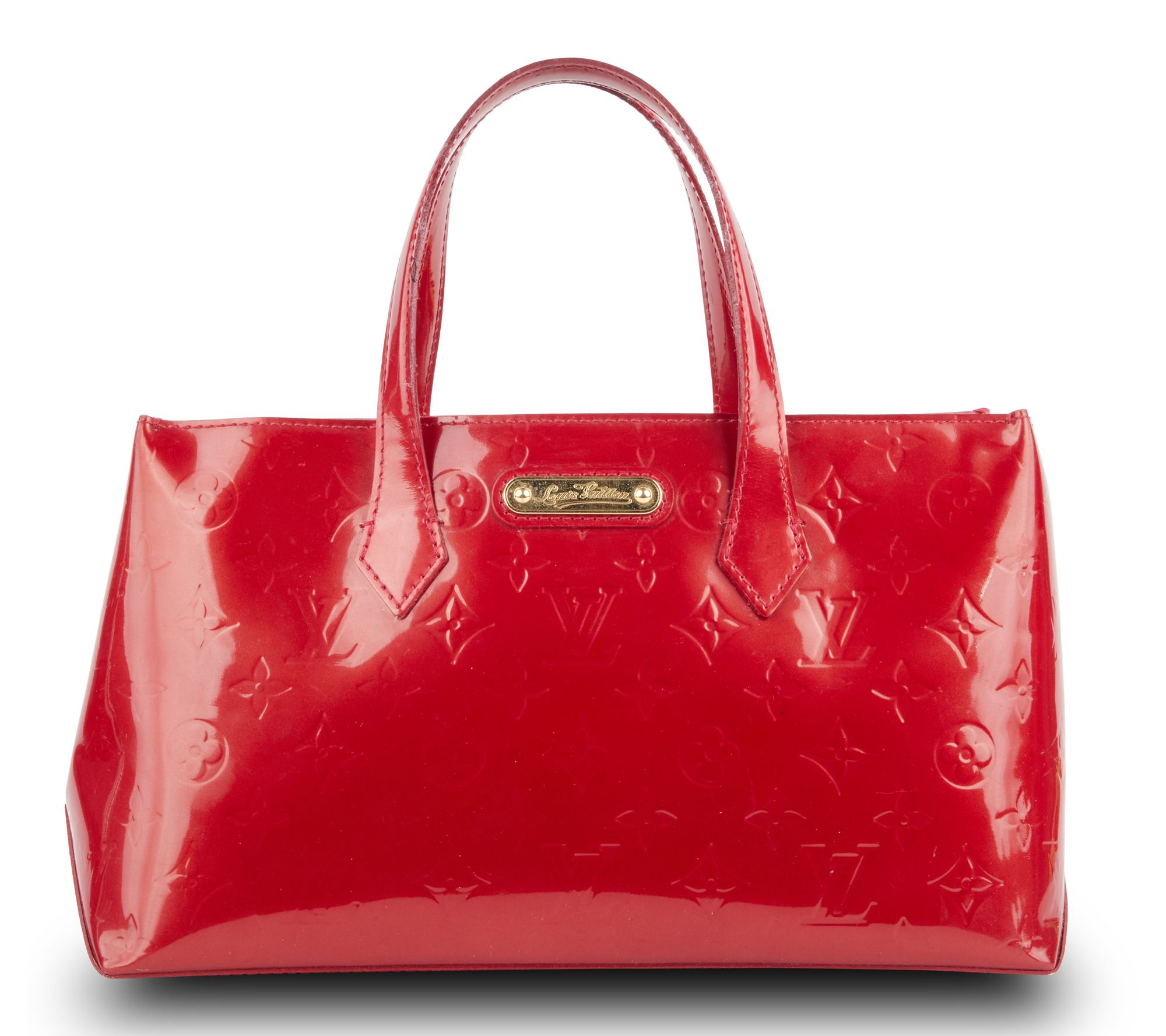 Elevate your style with the pre-owned Louis Vuitton Wilshire PM Monogram Vernis handbag in stunning pomme red. This elegant satchel features a luxurious leather exterior and a practical hook closure, making it both fashionable and functional. Perfect for any occasion, this timeless piece will add a touch of sophistication to your wardrobe. From Louis Vuitton.