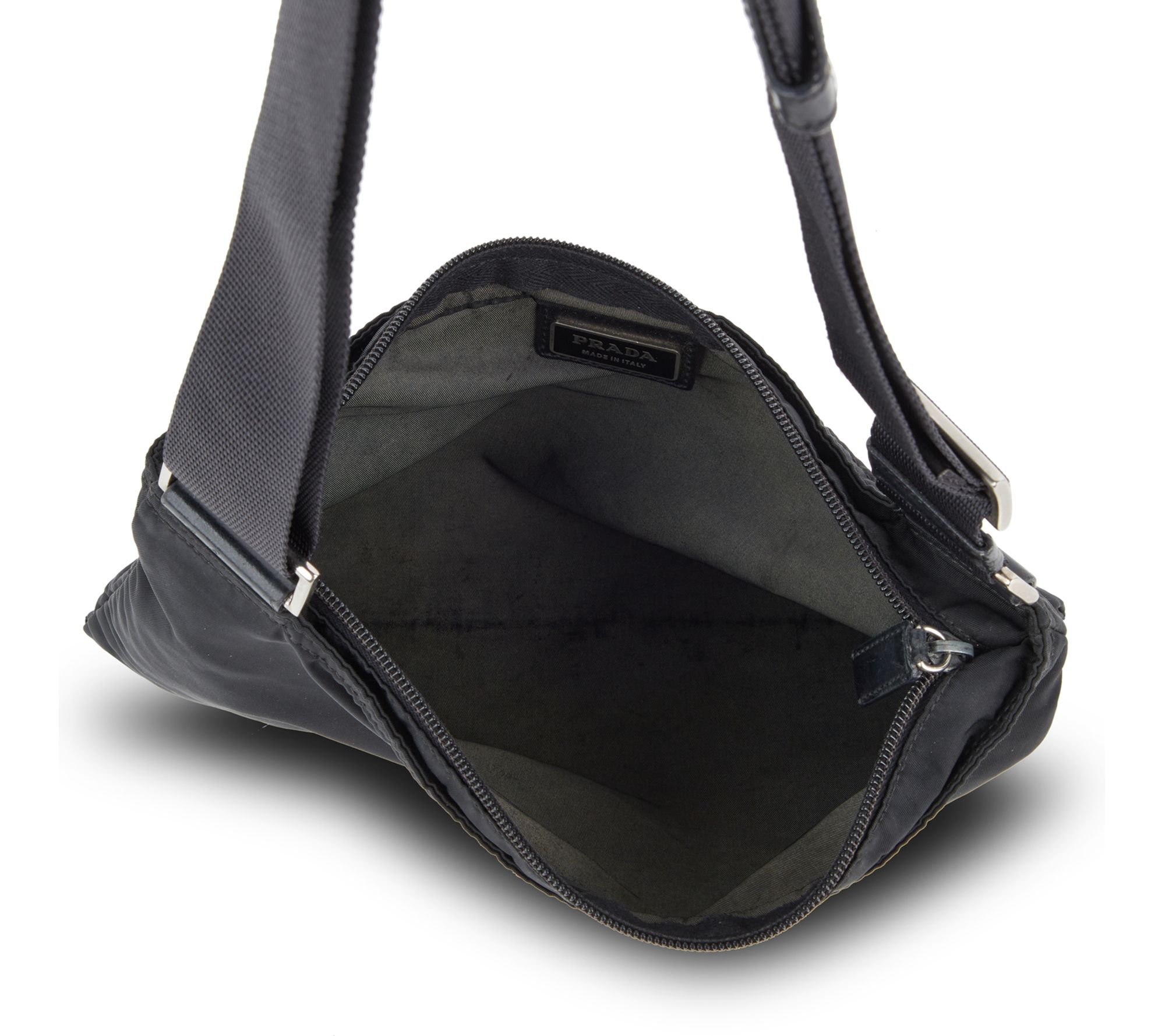 Discover the charm of timeless elegance with the pre-owned Prada Crossbody Bag in Tessuto Black. This exquisite piece, authenticated by Two Authenticators, marries functionality with luxury, offering a sleek design that complements any outfit. Its excellent vintage condition, with minor discolorations and scratches that speak to its history, while adding character without compromising style. From Prada.