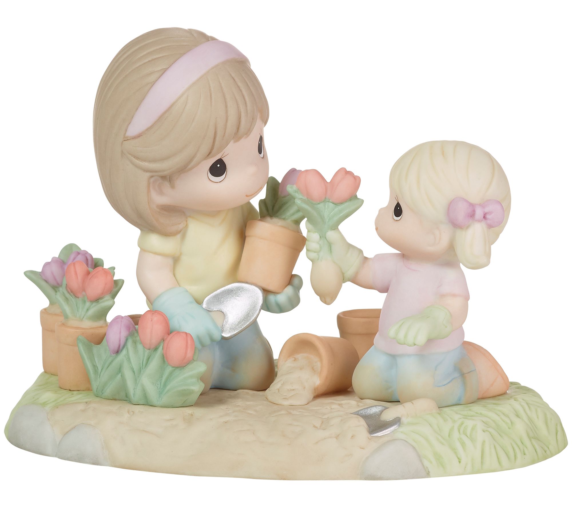 Celebrate a mother's unwavering love with this sweet figurine that depicts mom and daughter in their garden surrounded by tools and beautiful flowers. From Precious Moments.