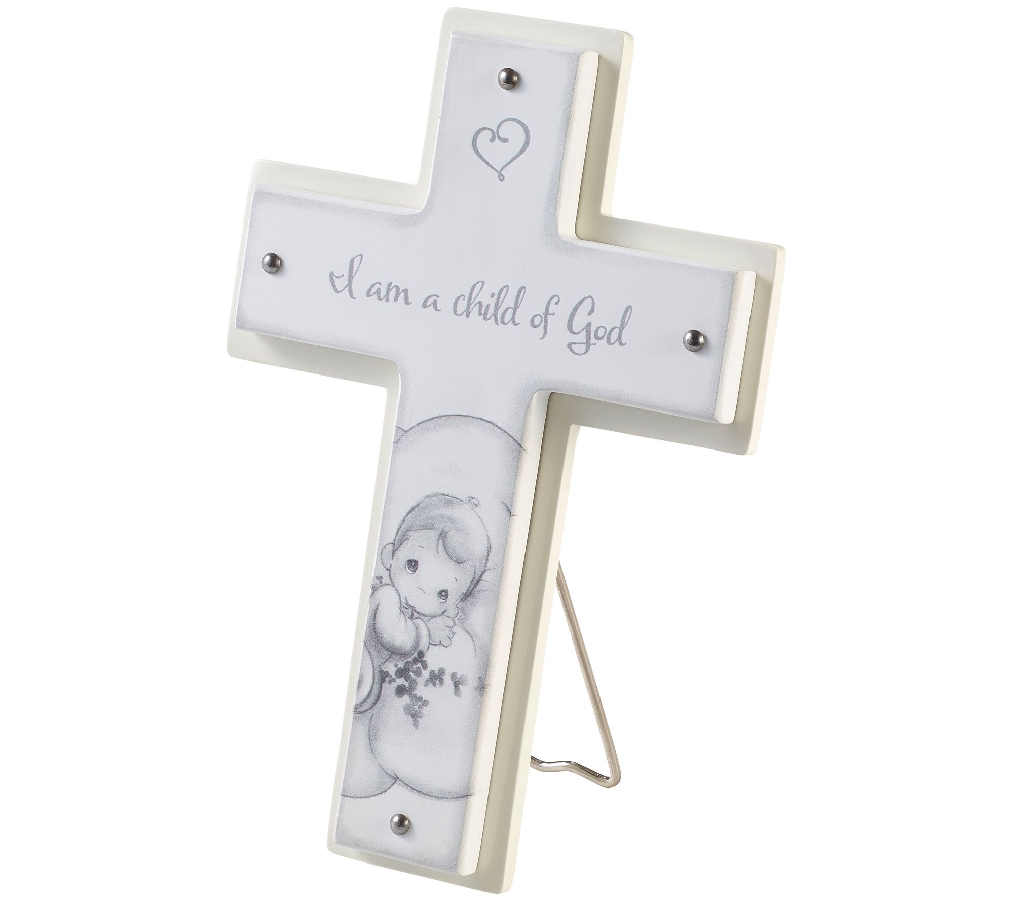 A nursery just isn't complete until it is graced with a cross. Beautiful in its simplicity, this cross shares an affirmation of God's love. From Precious Moments.