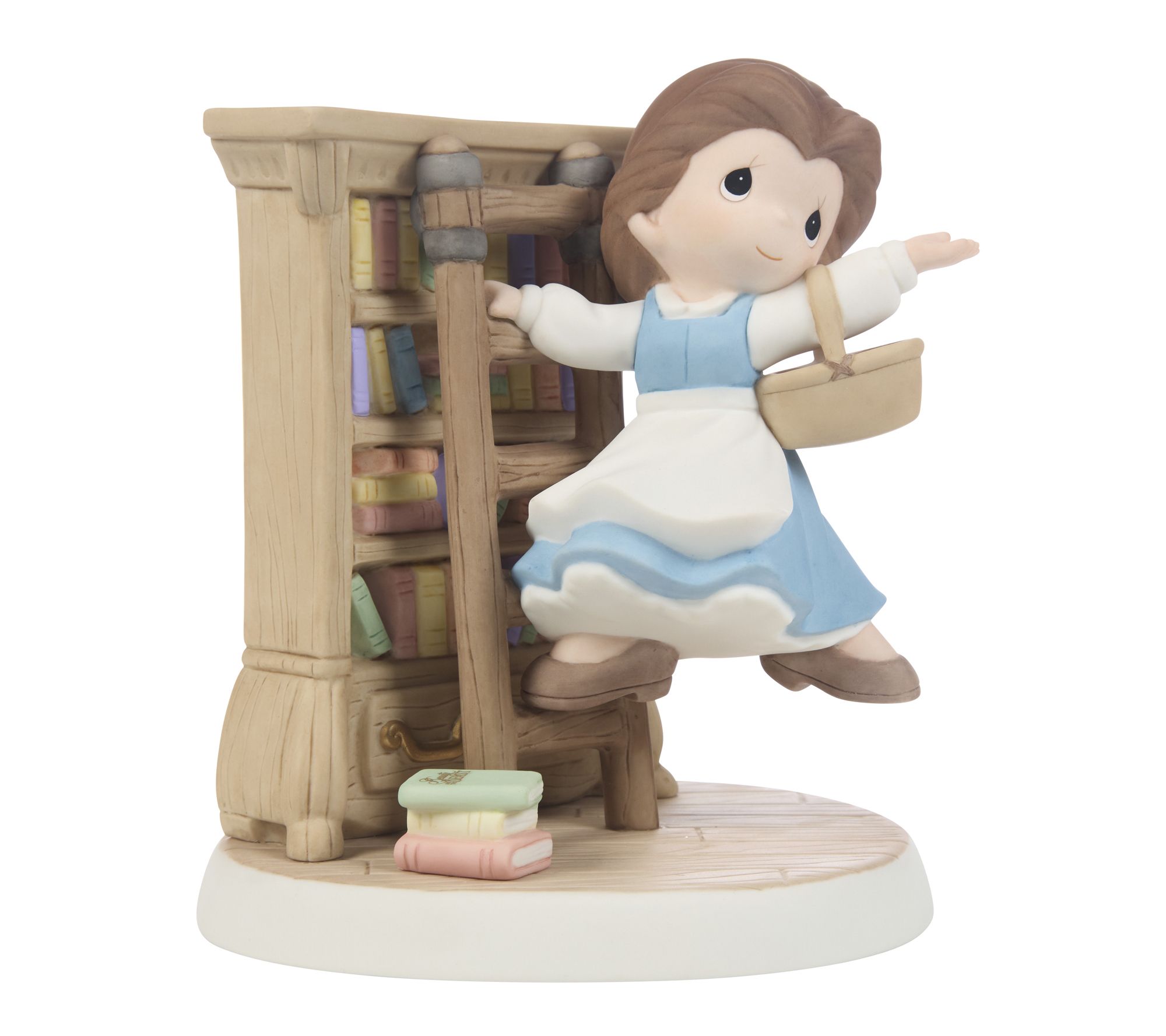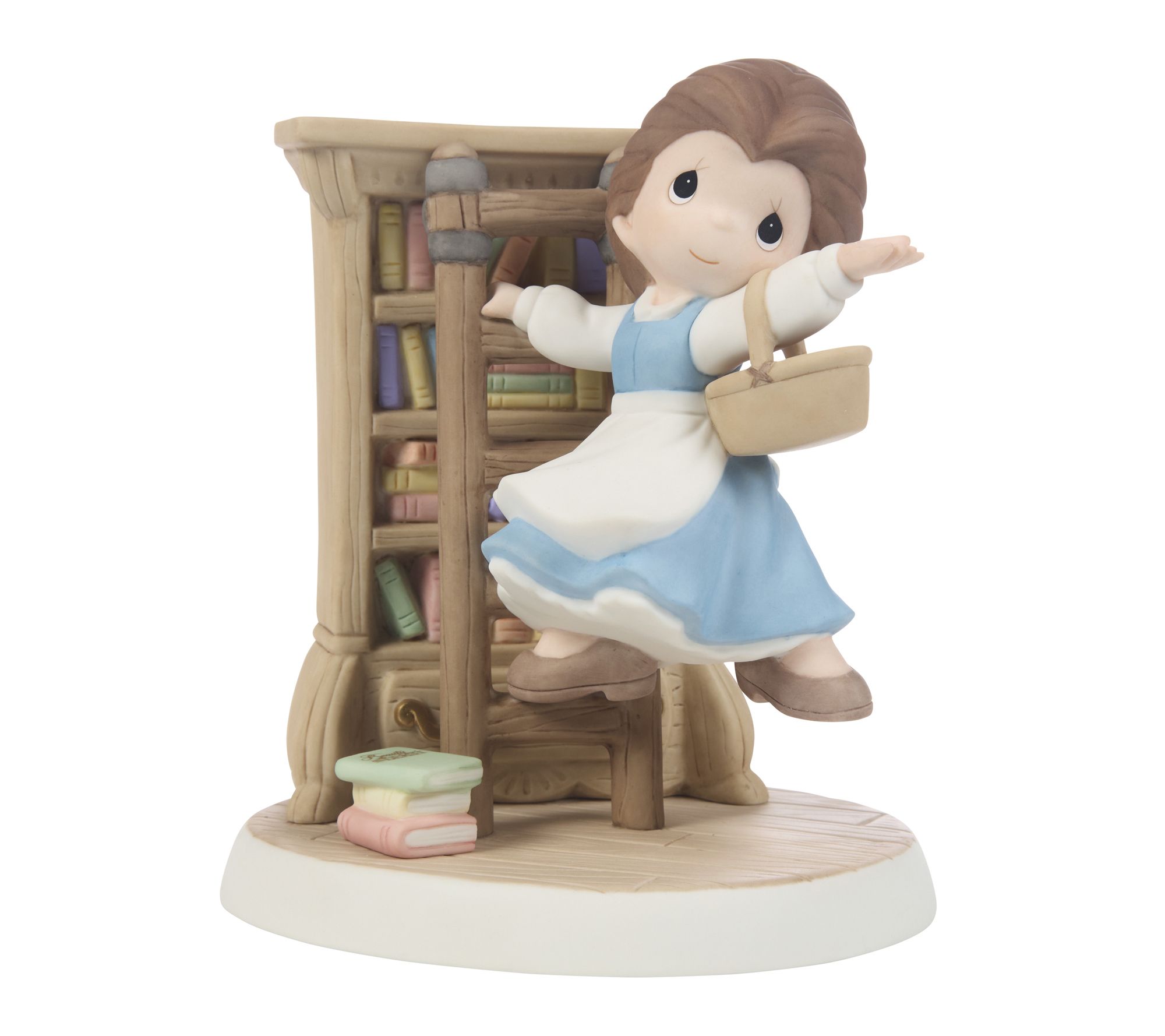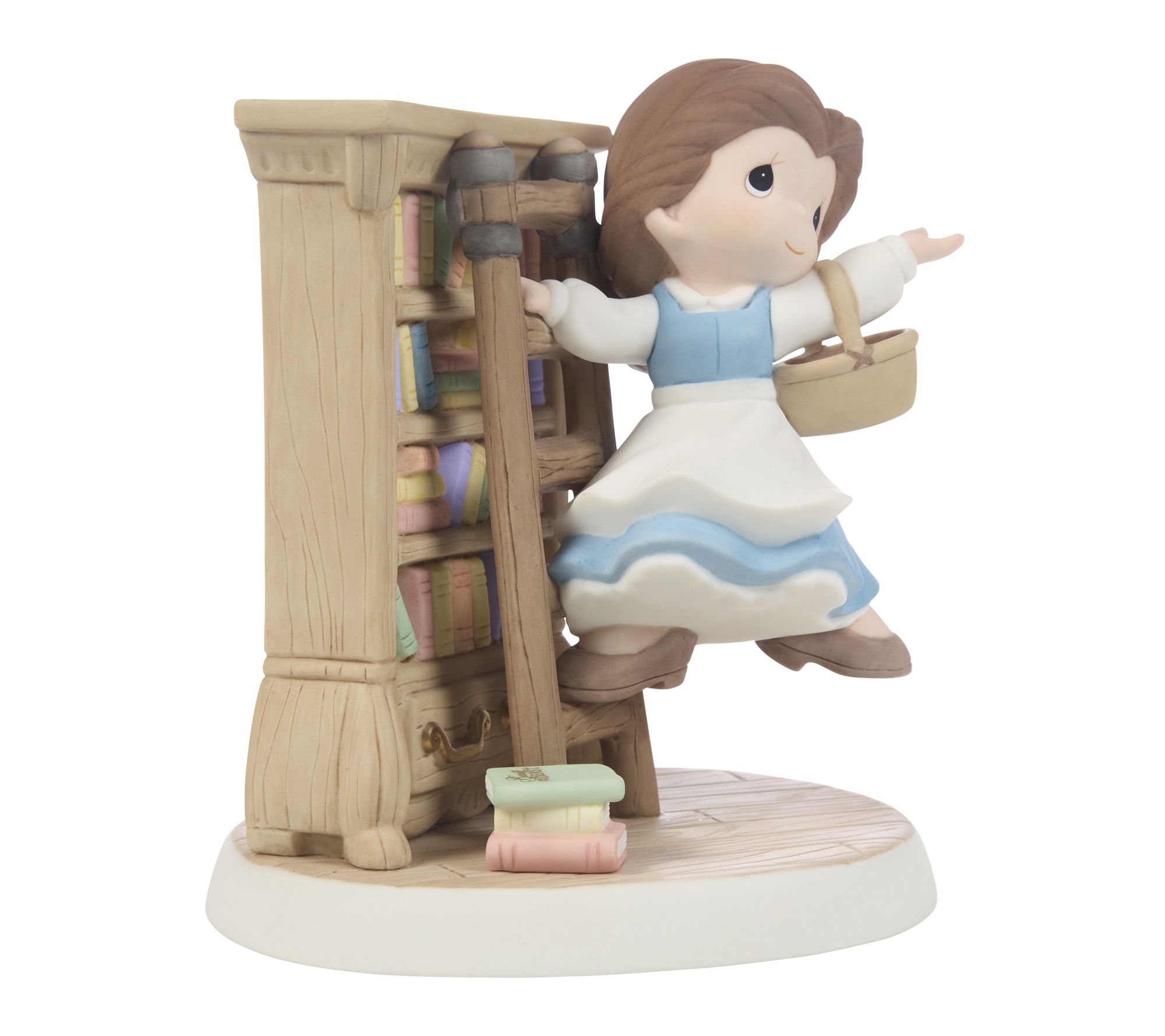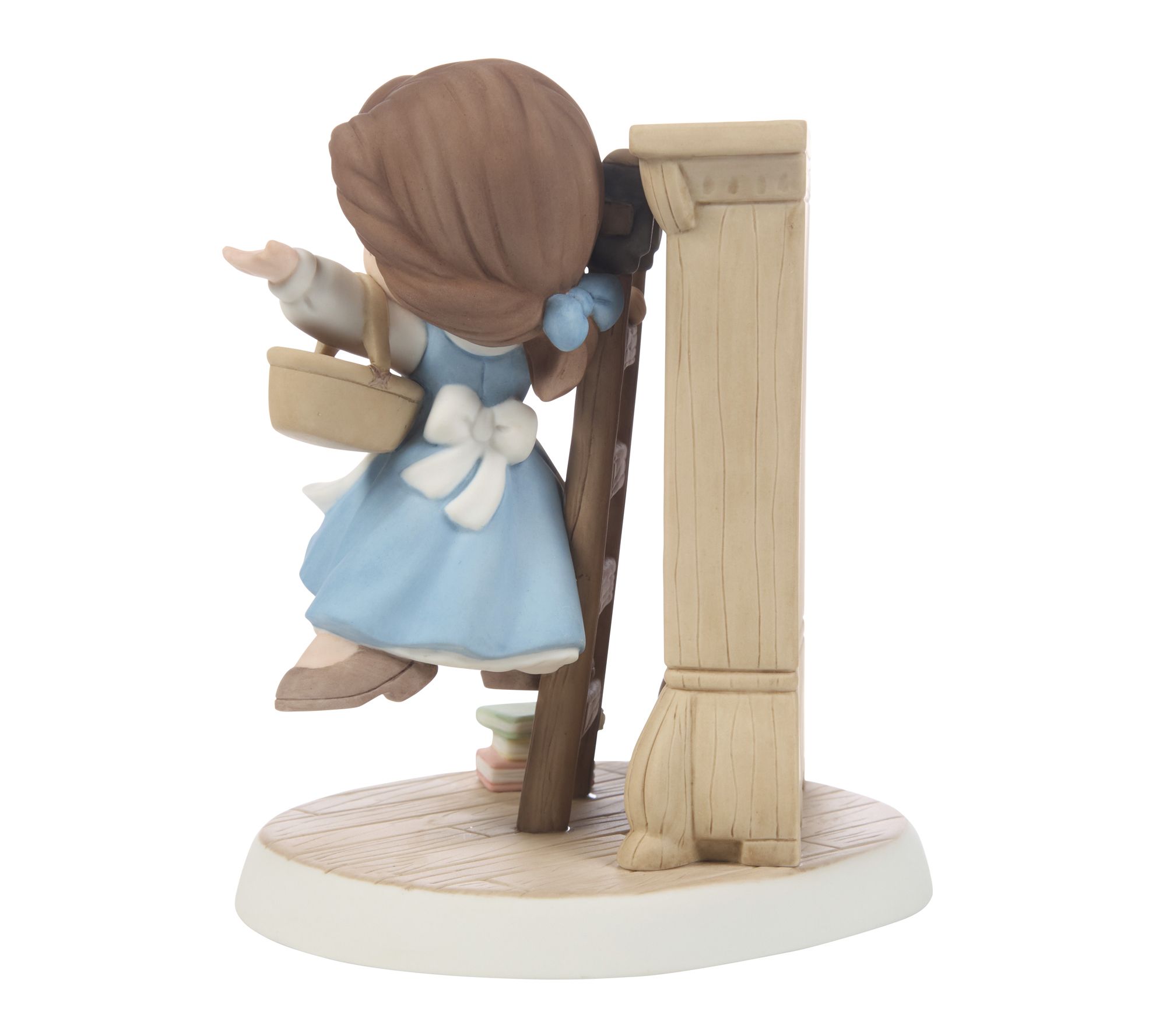Belle climbs her ladder to reach another enchanting story in this Disney figurine, bringing the magic of her library to your living room. Crafted from porcelain, this decorative piece evokes a sense of wonder and nostalgia for fans of fantasy and fairy tales. Let this figurine inspire your bookshelf or accent table with an imaginative touch. From Precious Moments.