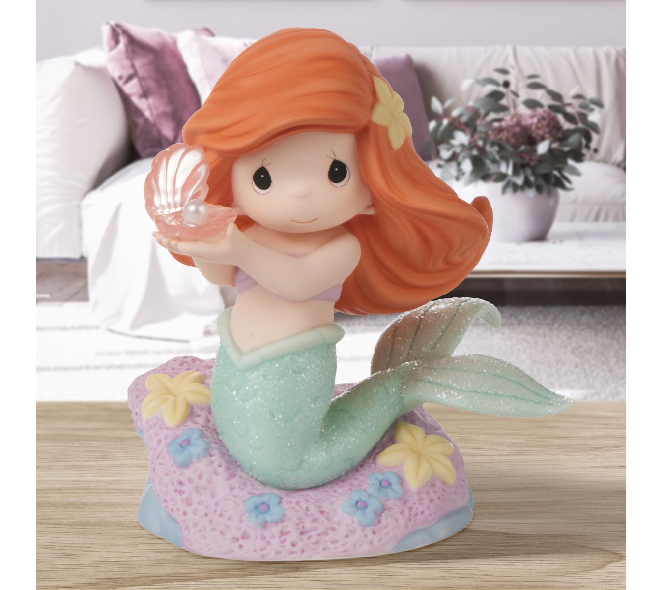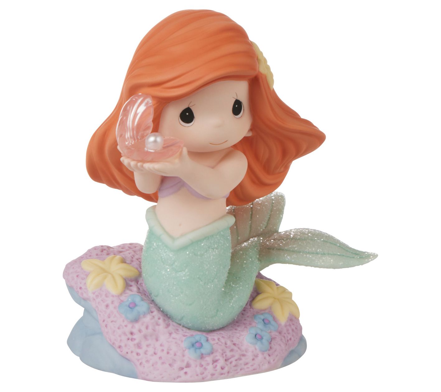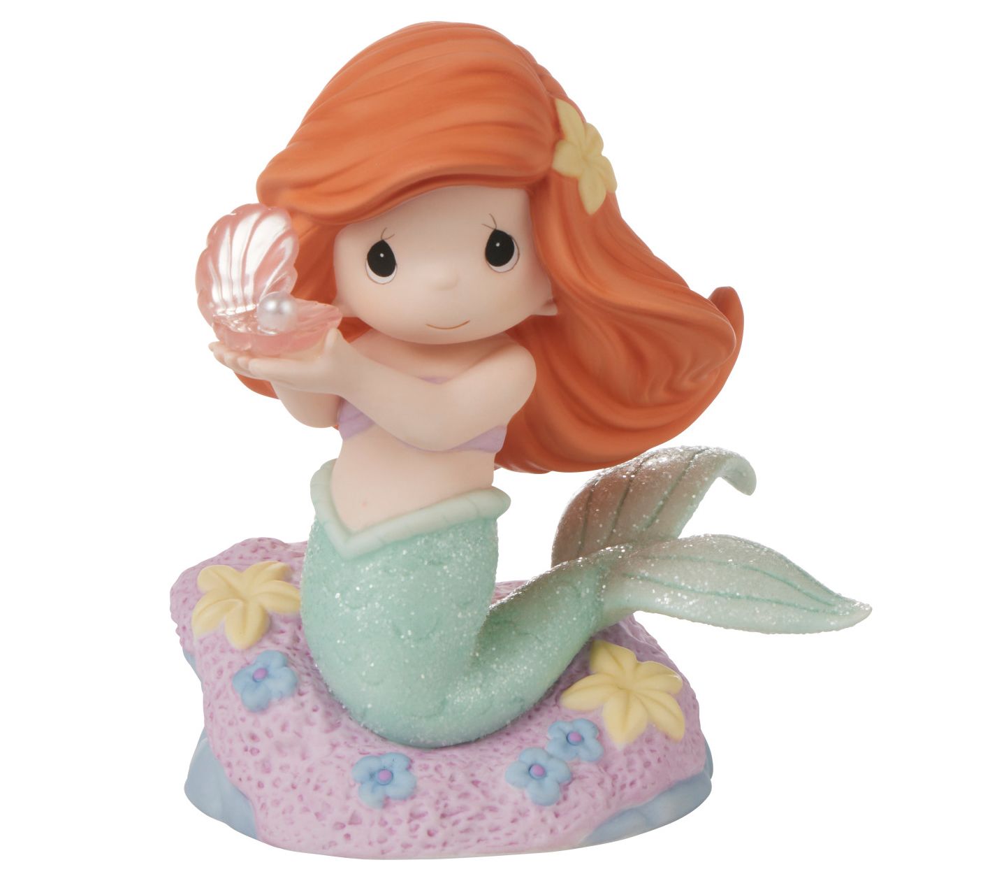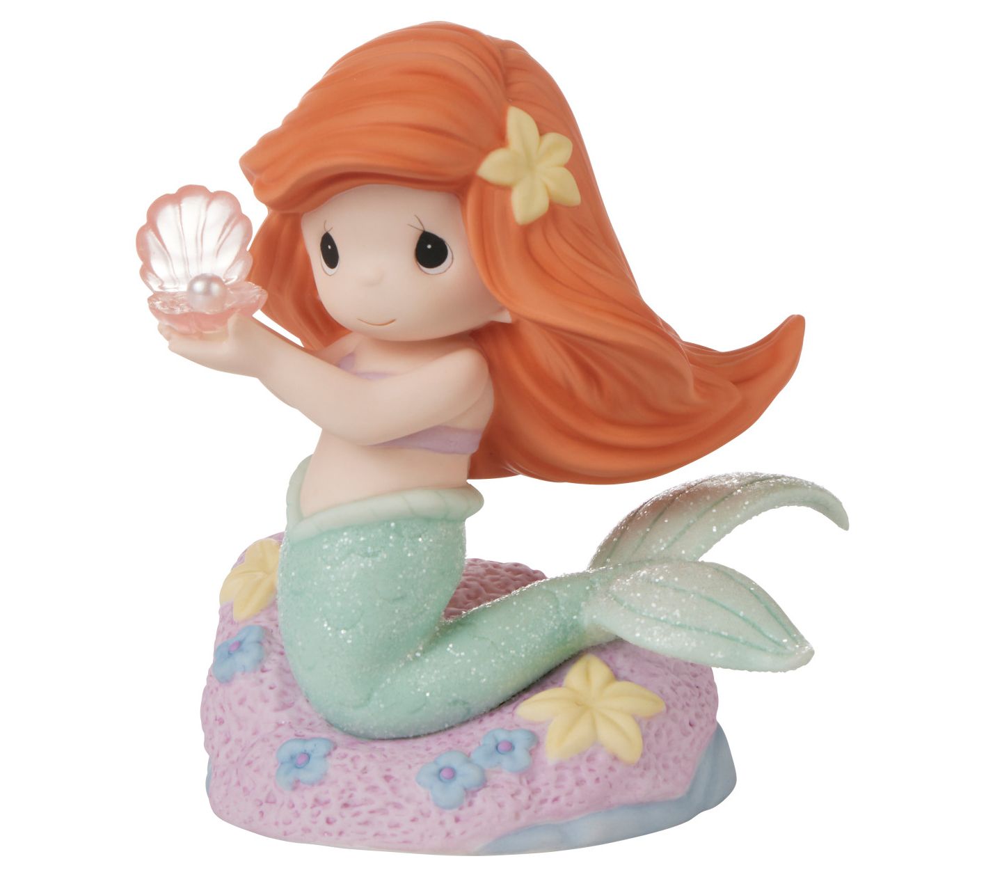 Dive into a world of undersea adventure with the You're A Rare Find figurine, capturing Ariel's discovery of a precious clam shell on the ocean floor. This bisque porcelain piece, meticulously painted, brings the charm of Disney's beloved princess to your home. From Precious Moments.