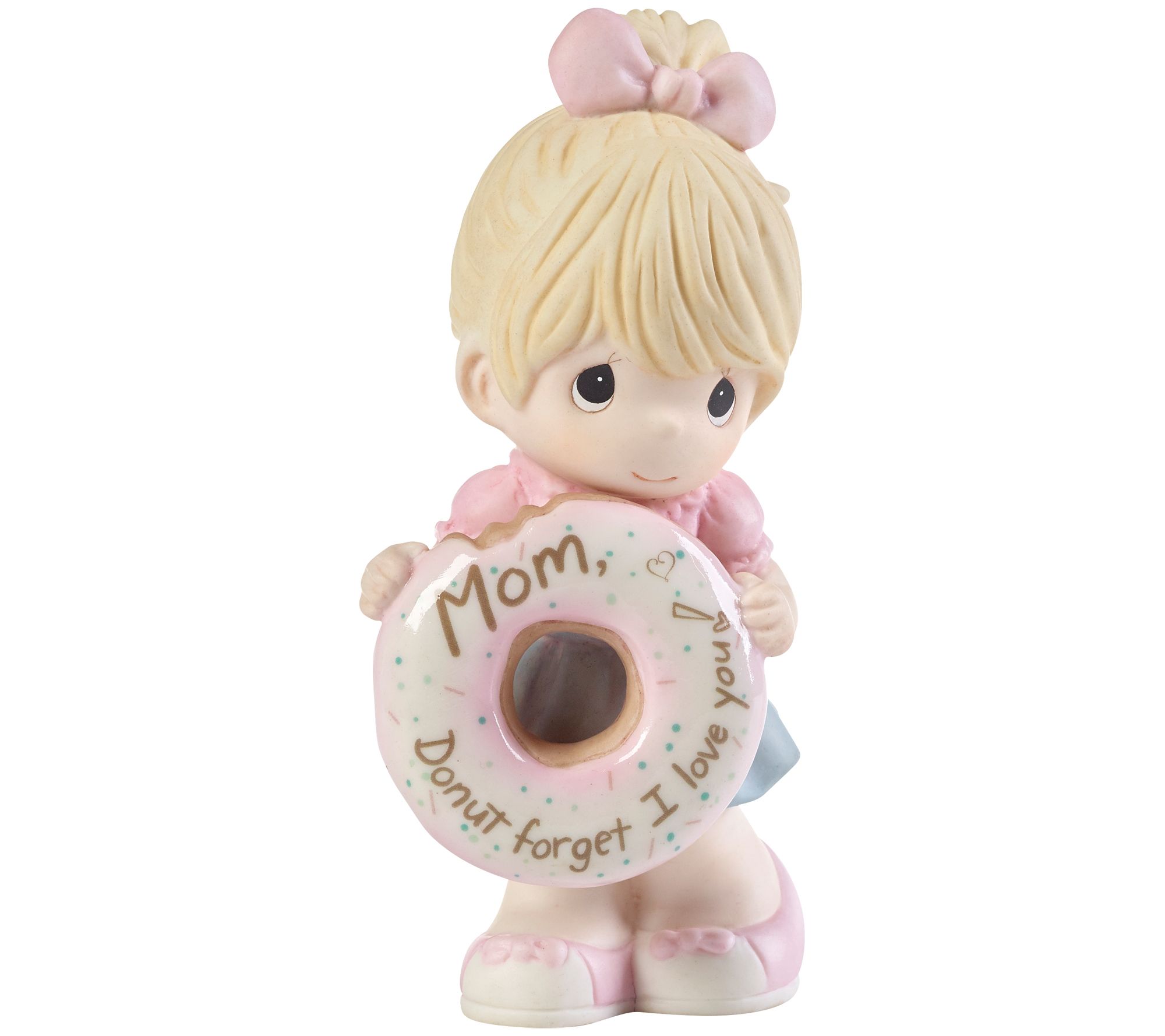 Holding a larger than life donut, this sweet girl in denim and pink leaves no doubt as to how much Mom is adored. From Precious Moments.