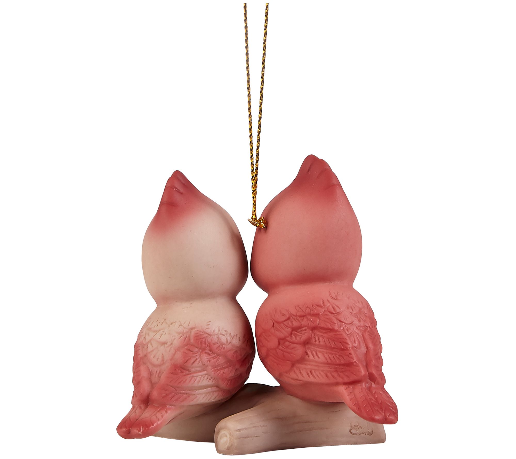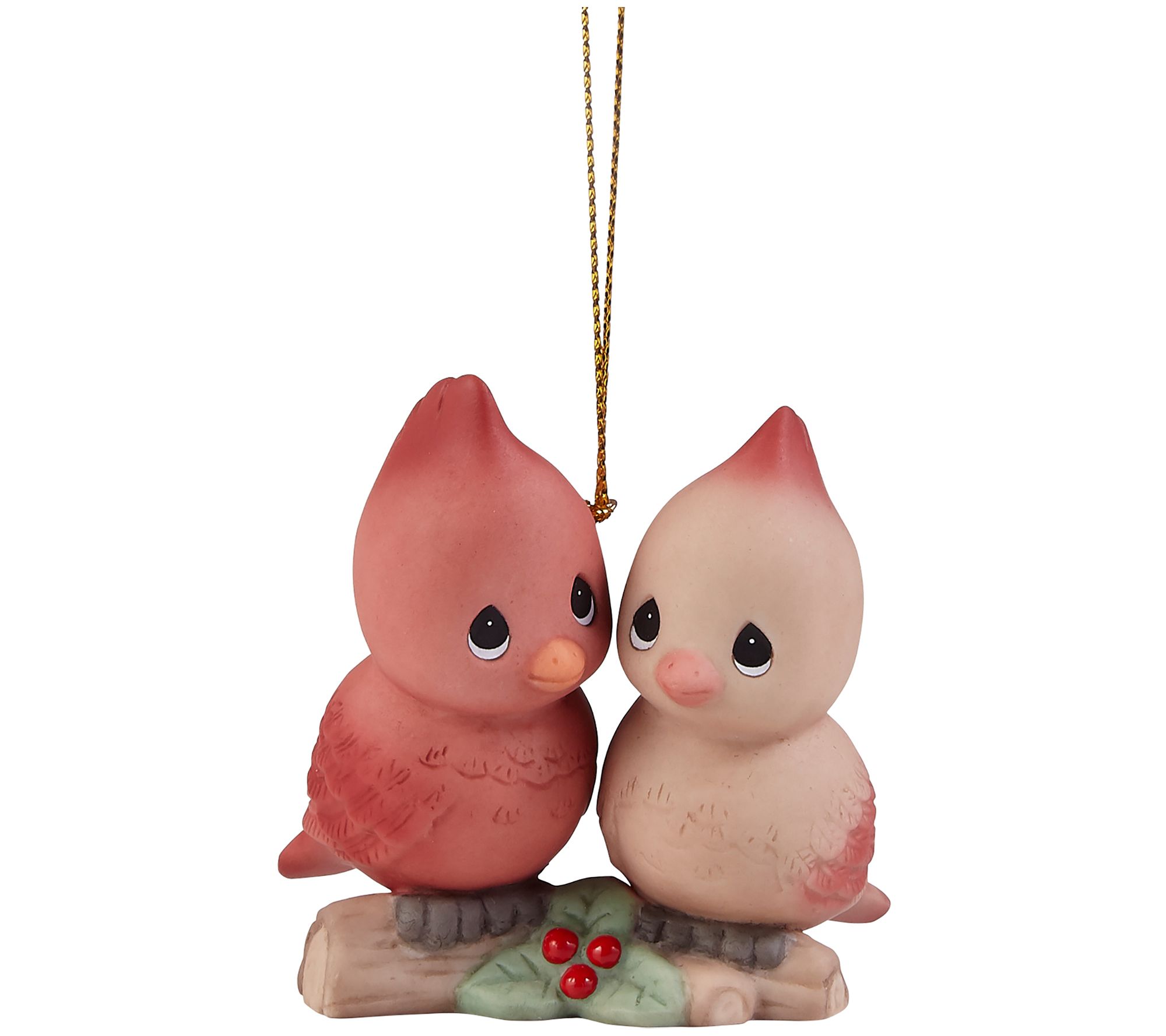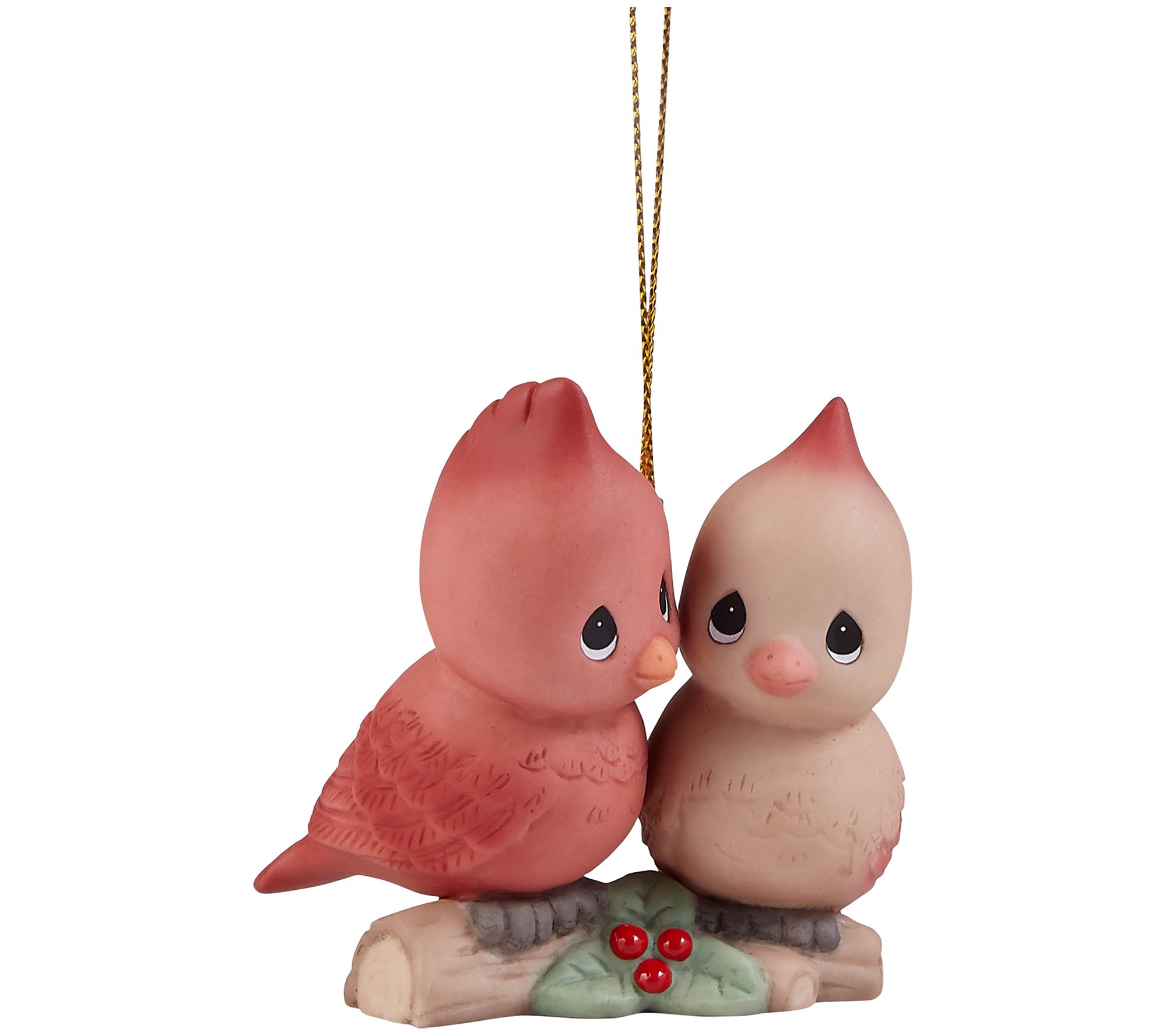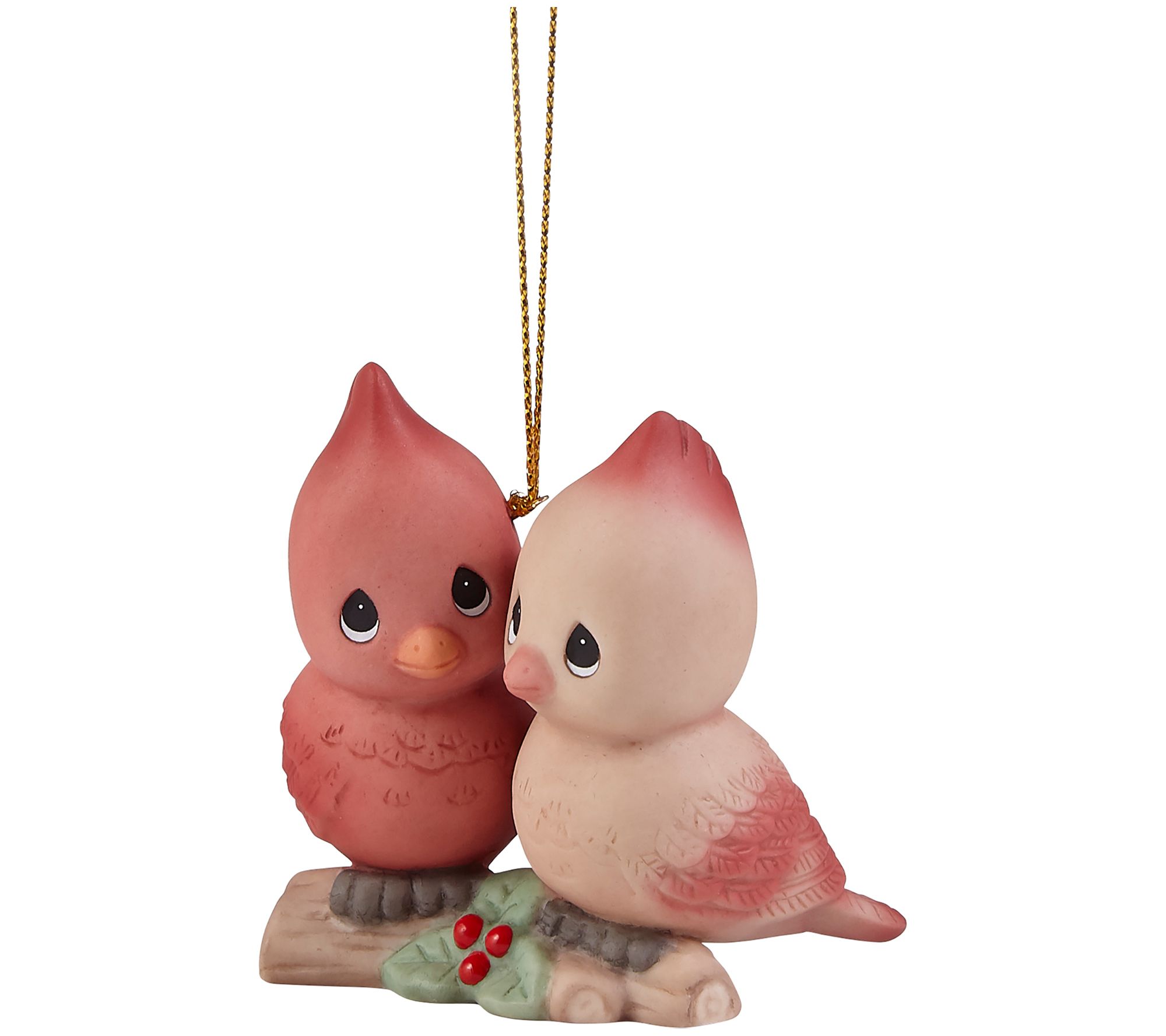 Deck your halls and your tree with the festive charm of this tweet-worthy porcelain bird duo ornament. It comes ready to hang on a bare branch with its shimmering goldtone cord. From Precious Moments.
