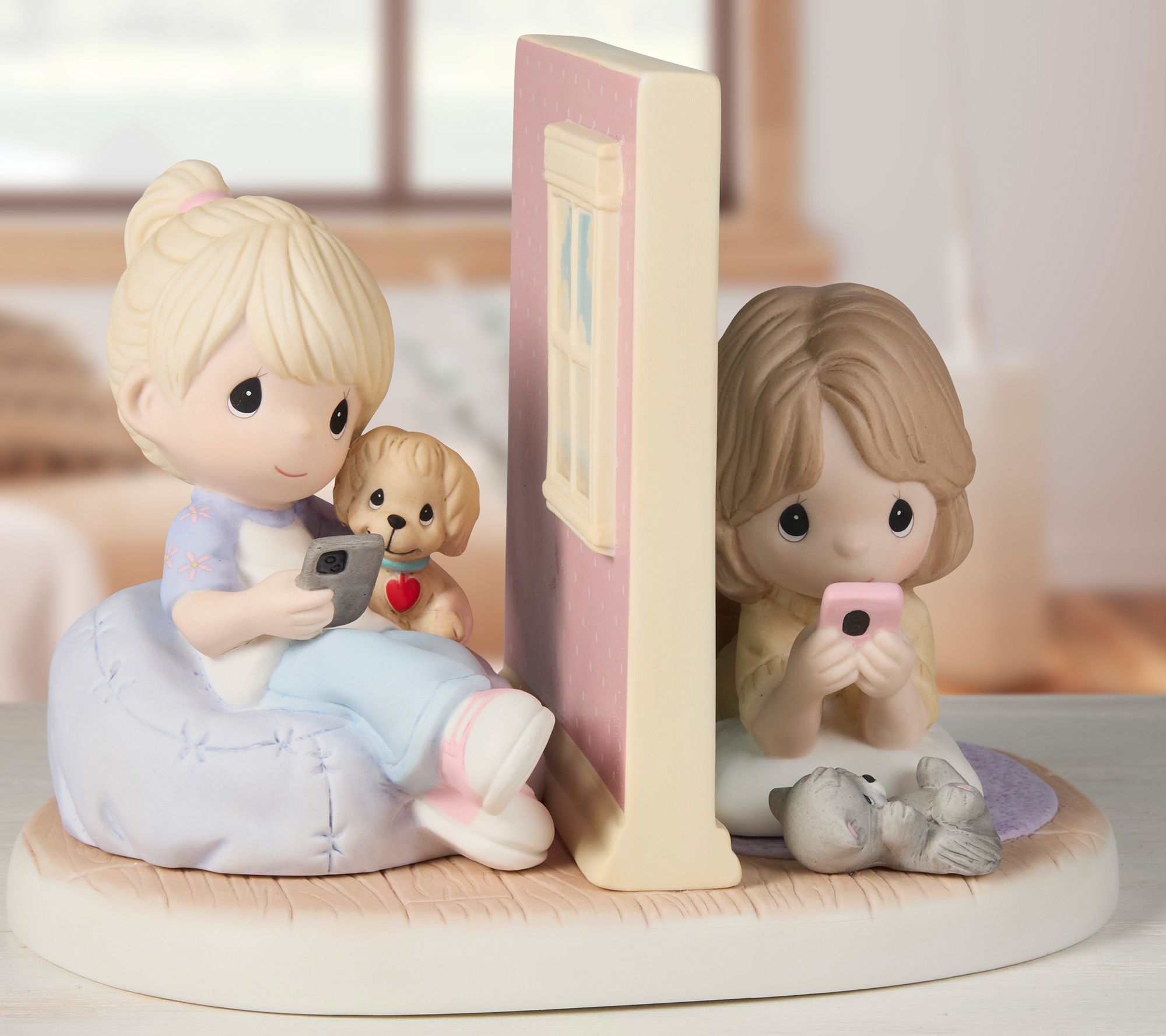 Whether your best friend is across the street or miles away, this charming Precious Moments figurine captures the timeless bond of friendship. The beautifully painted bisque porcelain piece shows best friends video chatting, a heartfelt reminder that technology helps us stay close, no matter the distance.
