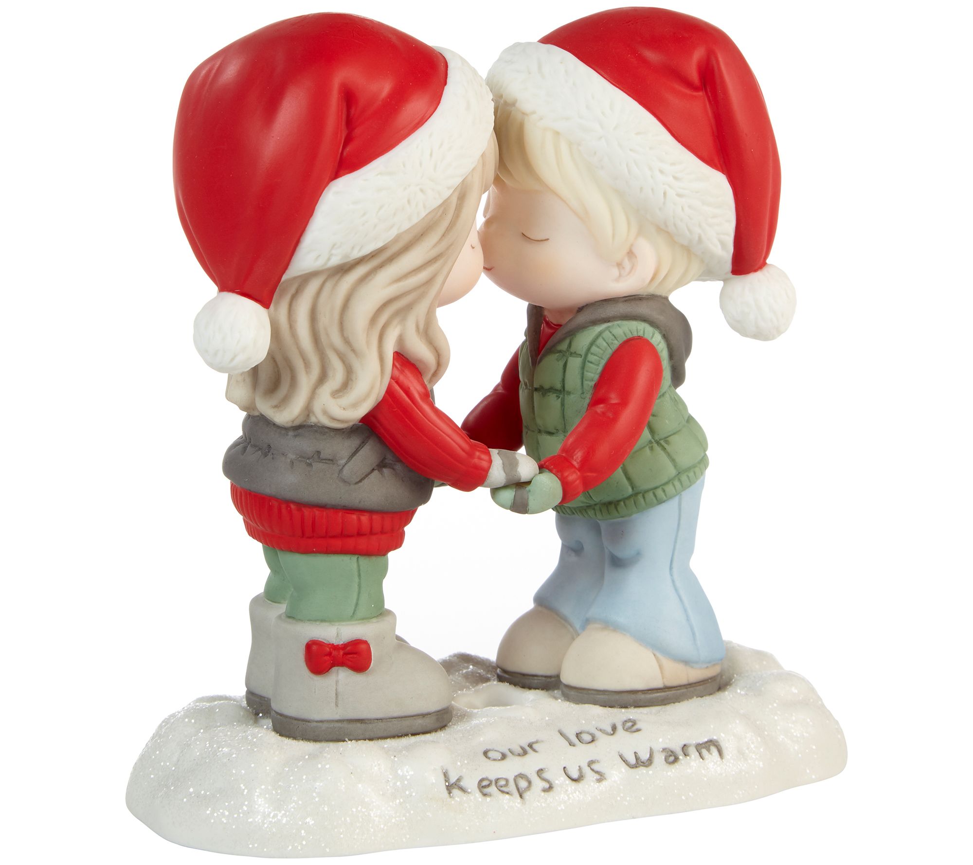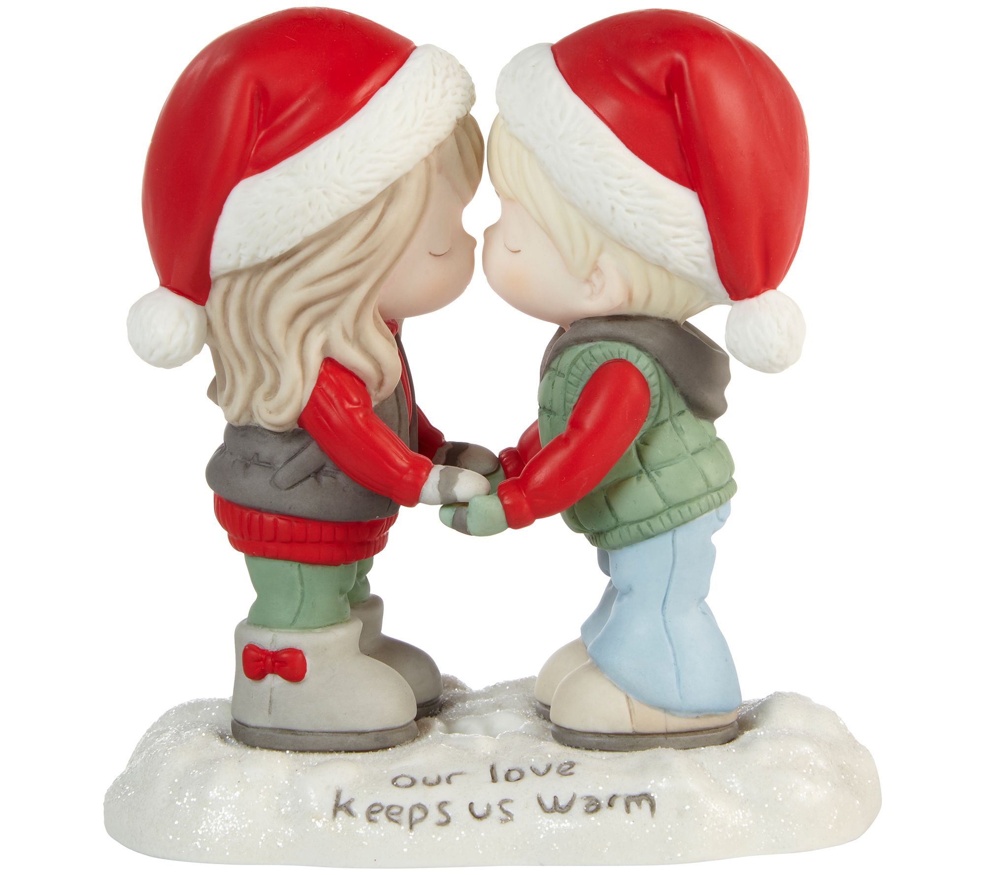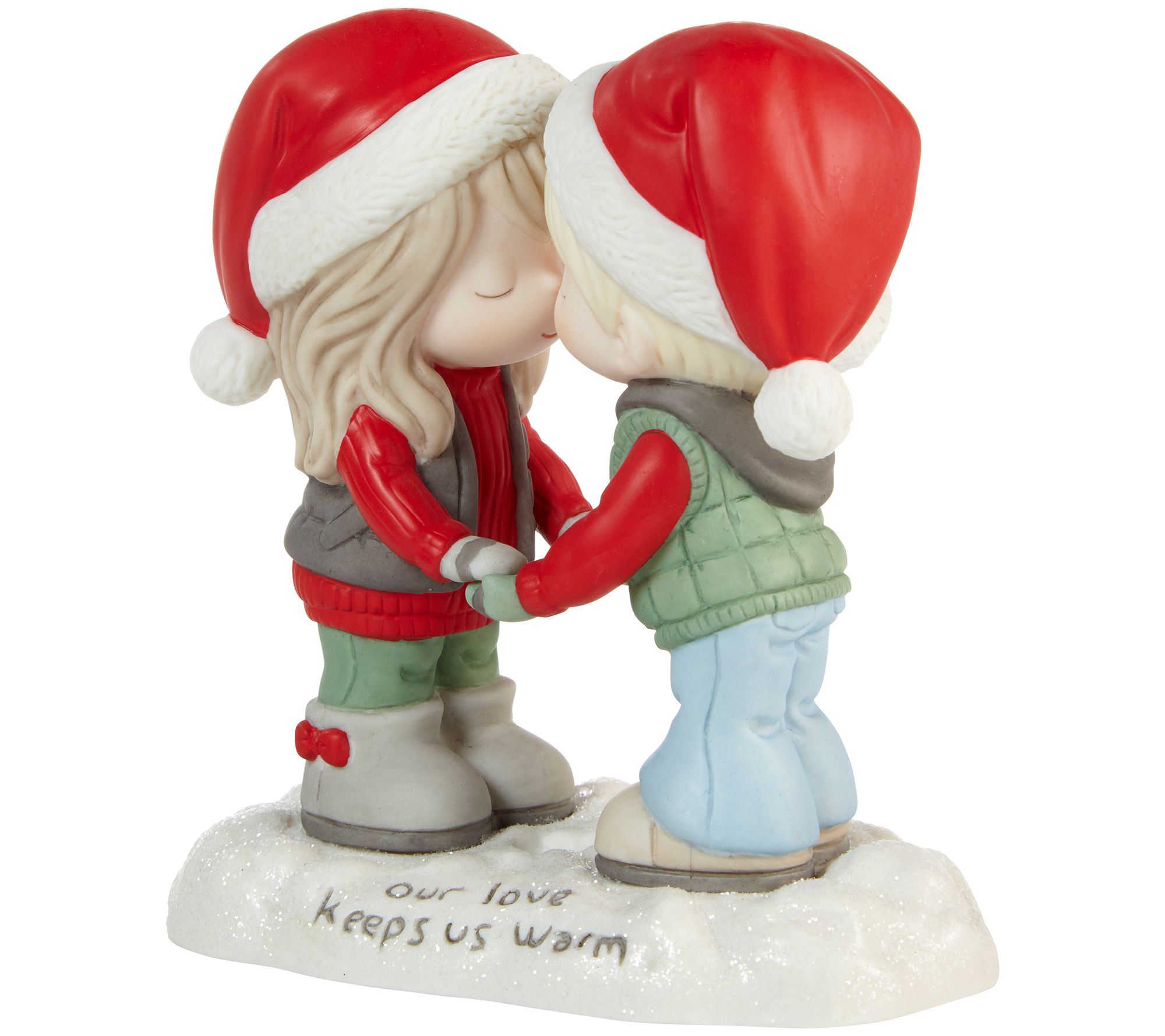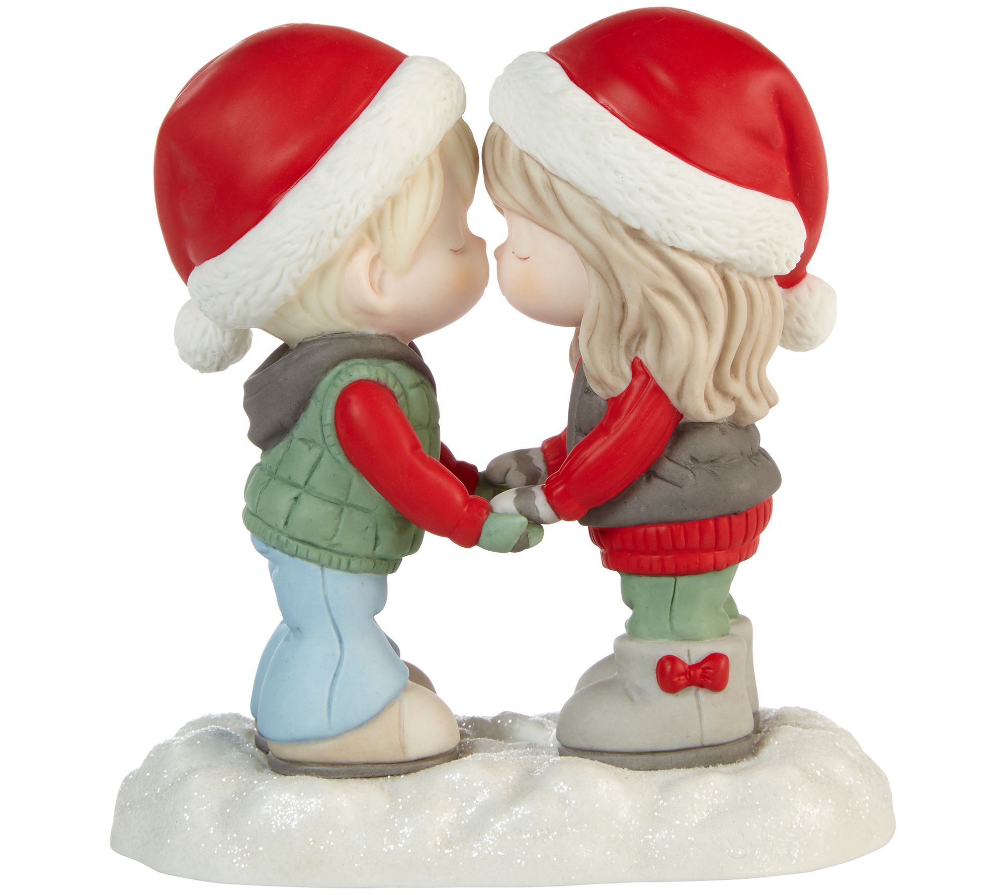 Leaning in for a tender kiss, this sweet couple wearing Santa hats and mittens reminds us what's important. From Precious Moments.