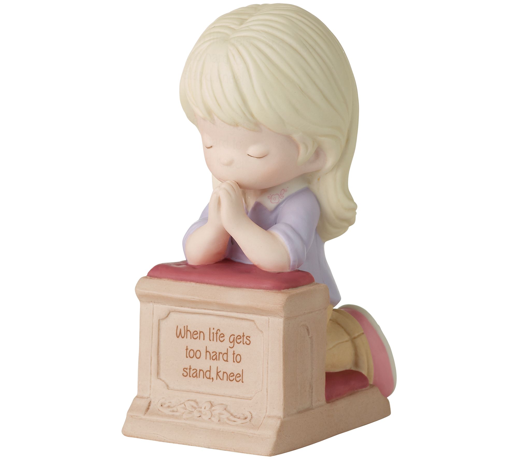 Embrace your personal faith with this figurine that depicts a tranquil scene of a blonde girl kneeling to say a silent prayer. From Precious Moments.