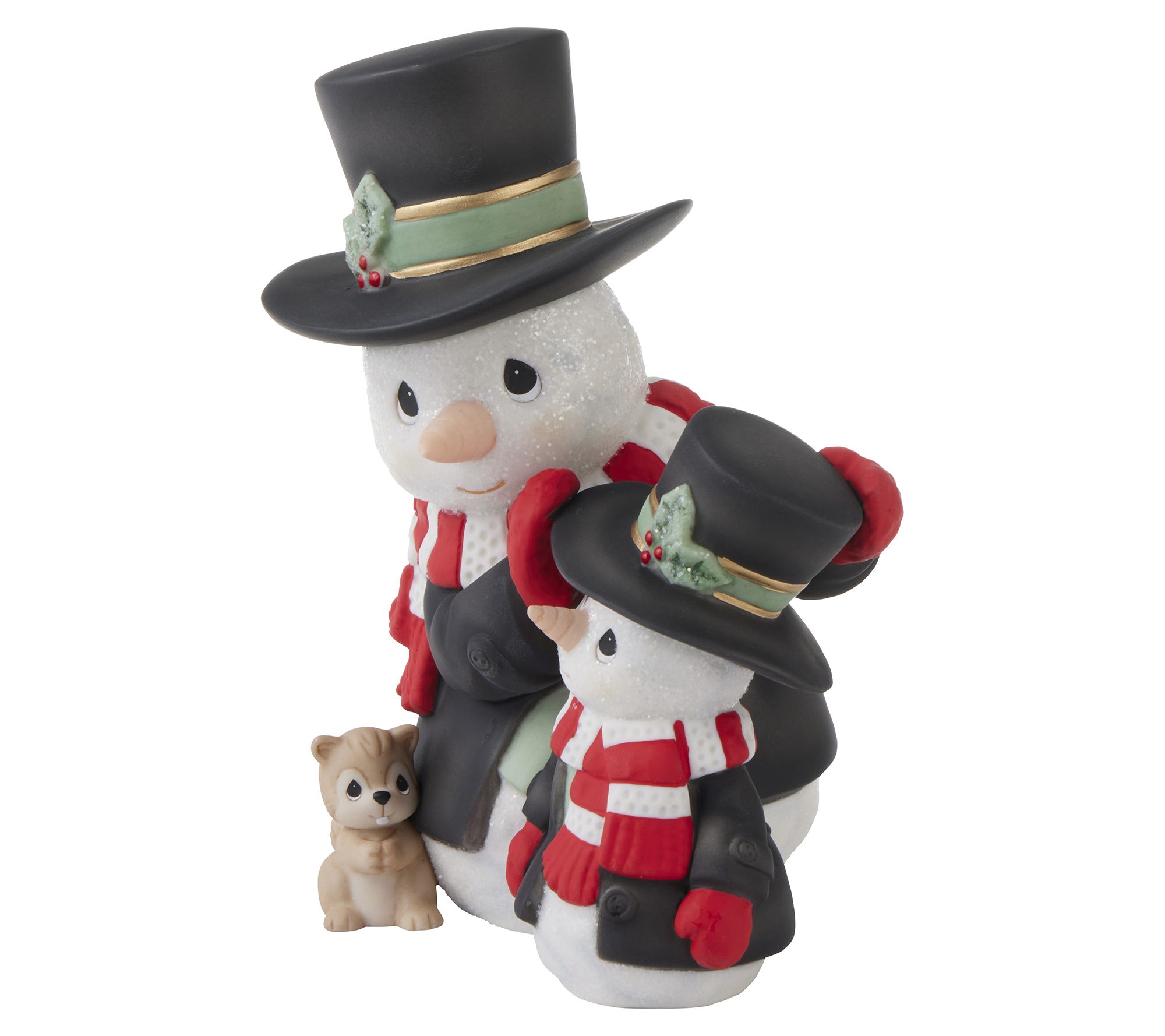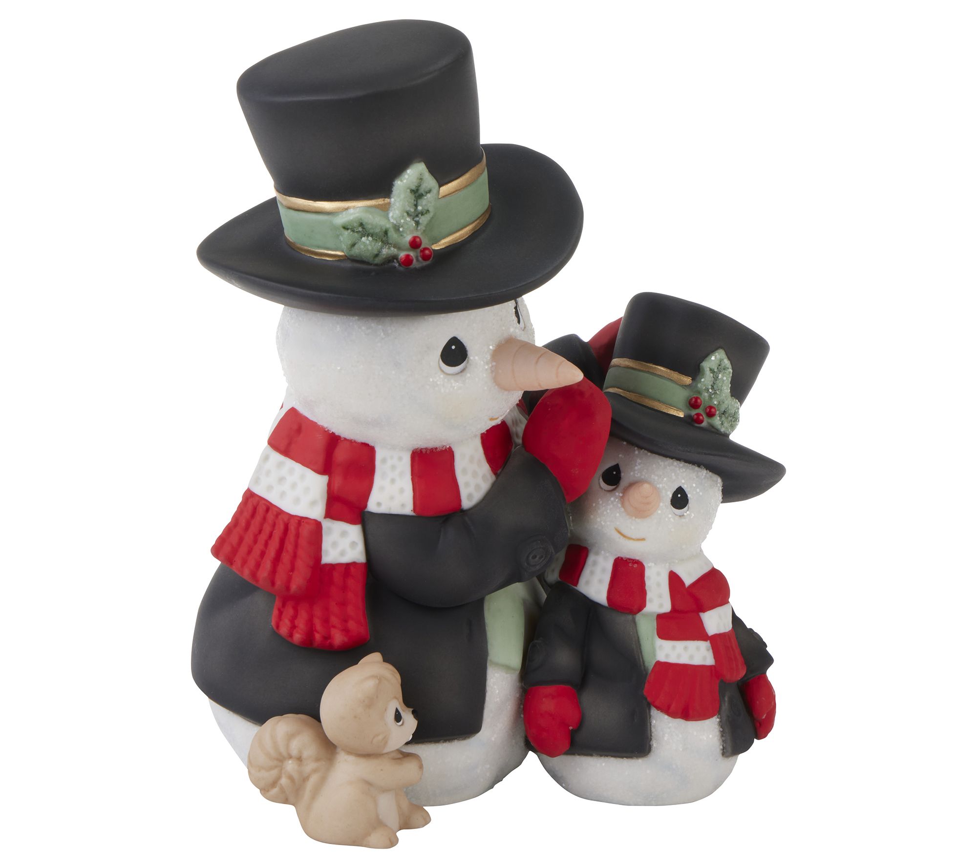 Add a heartfelt touch to your holiday decor with Precious Moments' You Bring Warmth Annual Snowman Figurine. This delightful father-and-son duo, accompanied by a cute squirrel friend, brings charm and nostalgia. Perfectly hand-painted and crafted from fine bisque porcelain, this piece will make your traditions even more memorable. From Precious Moments.