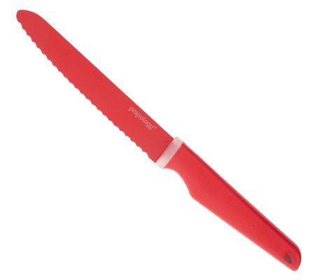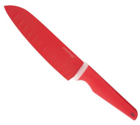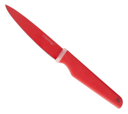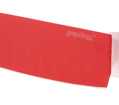 Each knife is crafted from durable stainless steel and features a nonstick coating for easy food release. Translucent, protective sheaths help blades sharp and fingers safe. From Prepology(R) Kitchenware.