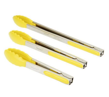 Hold your tong. This set of three speaks for you. With versatile sizes; vibrant, easy-to-grip handles; and convenient closures, they'll quickly become the talk of any kitchen. From Prepology(R) Kitchenware.
