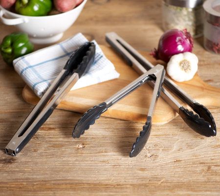 • Includes three sets of tongs, one each in 9"L, 12"L, and 16"L sizes