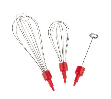 Give your wrists a rest. Strong enough to whisk batter, this bionic whisk also works wonders for everything from eggs to cream to your morning latte. Three separate attachments make it ideal for a variety of tasks. From Prepology(R) Kitchenware.