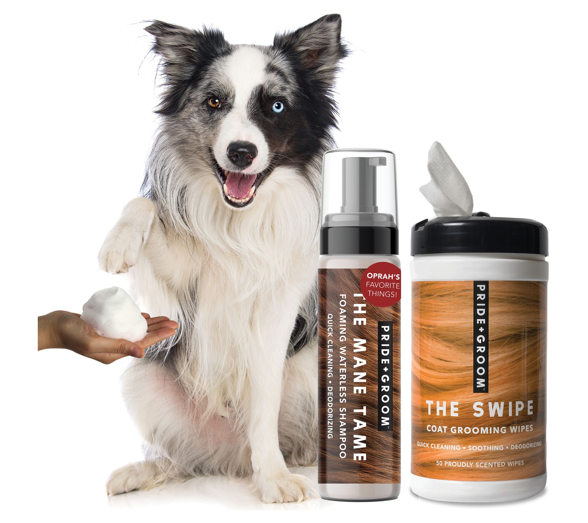 Pride+Groom 23oz Waterless Shampoo & Freshening Wipe Combo for Pets