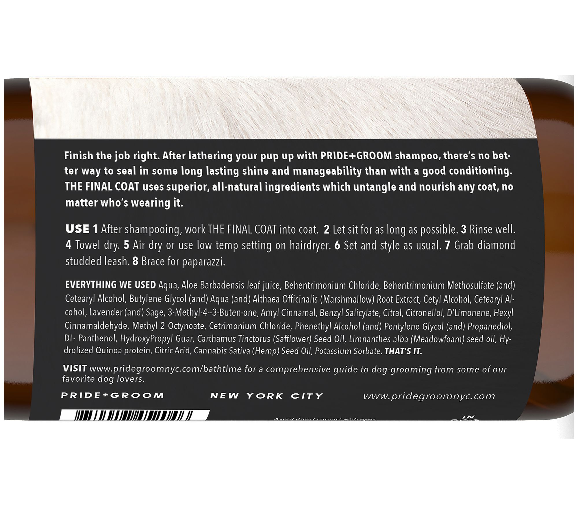 Help detangle and nourish your pet's coat with this lovely conditioner. The final step to a good groom, this conditioner will finish the job right. From PRIDE+GROOM.