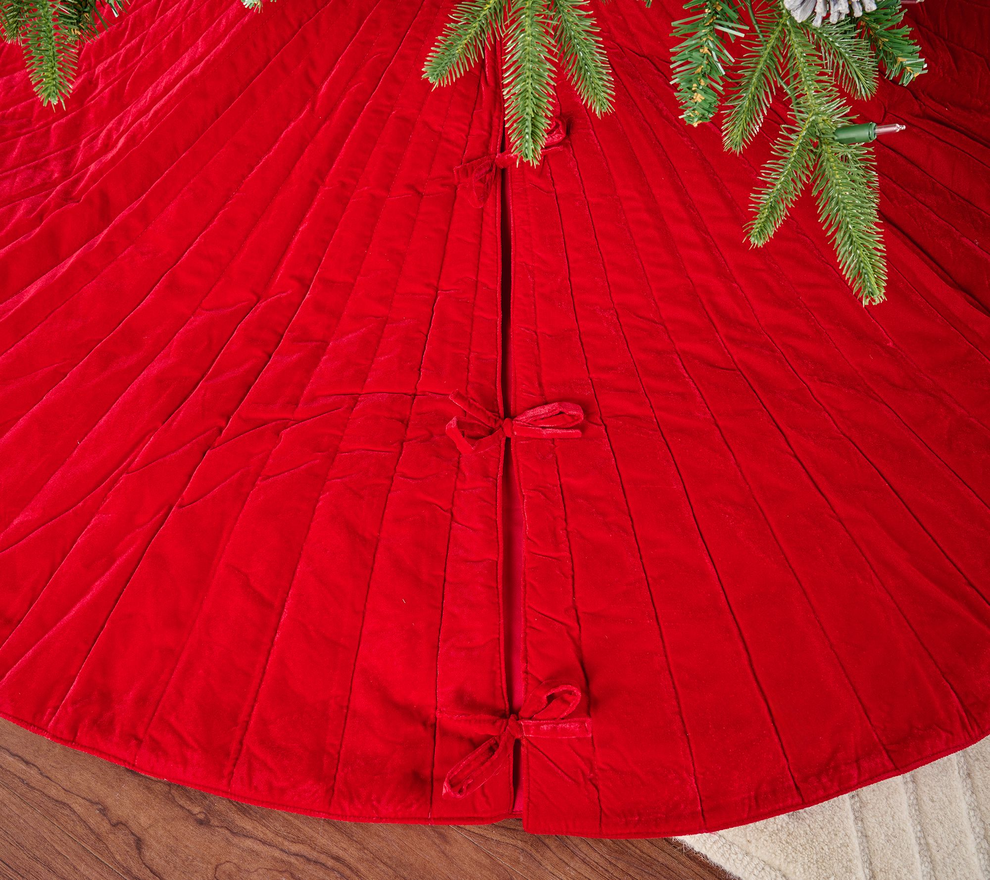 Finished trimming the tree? Yay, you! Now complete the look (and hide the wires) with the elegance of this tufted tree skirt. Adding the ideal finishing touch to your festive focal point, the plush velvet-like skirt features an elevated look and secures with prettily tied bows. From Primrose Hill.