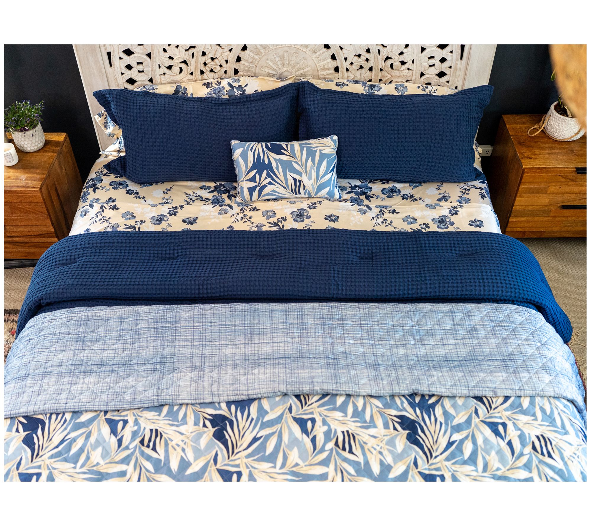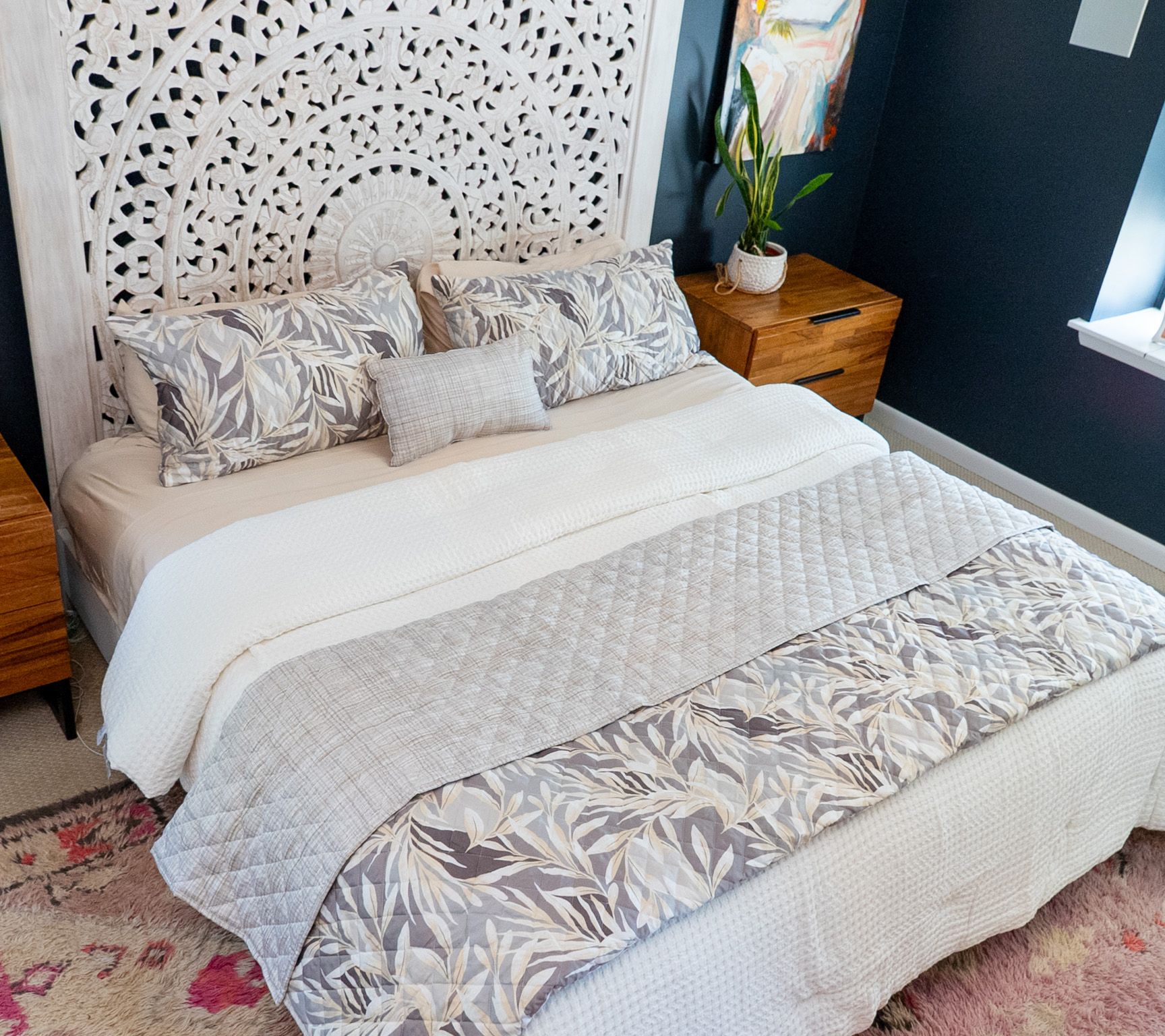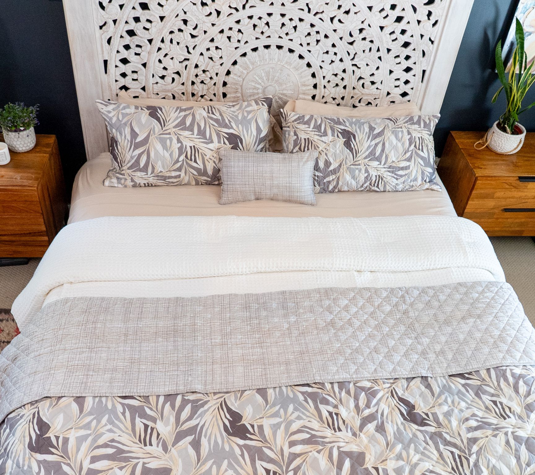 Seasonal bedding need a refresh? We're frond of this palm-printed quilt set by Kim Gravel! Styled with Kim's attention to lounge-in-bed comfort and playful looks, the set features a super-soft quilt, a coordinating sham, and a decorative pillow -- perfect for updating your bedroom or invigorating a guest room. Effortlessly switch up your style by reversing the quilt and shams. From Kim Gravel.