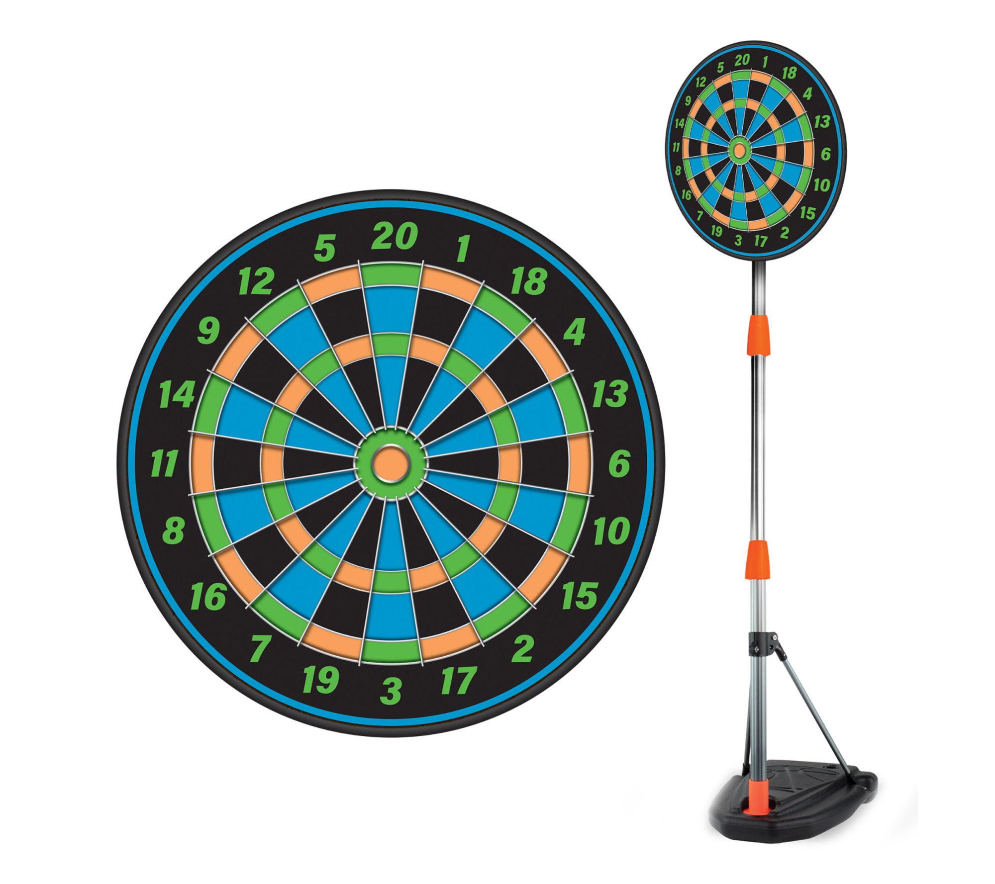 • Includes basketball, pump, six magnetic darts, magnetic dartboard, and basketball hoop