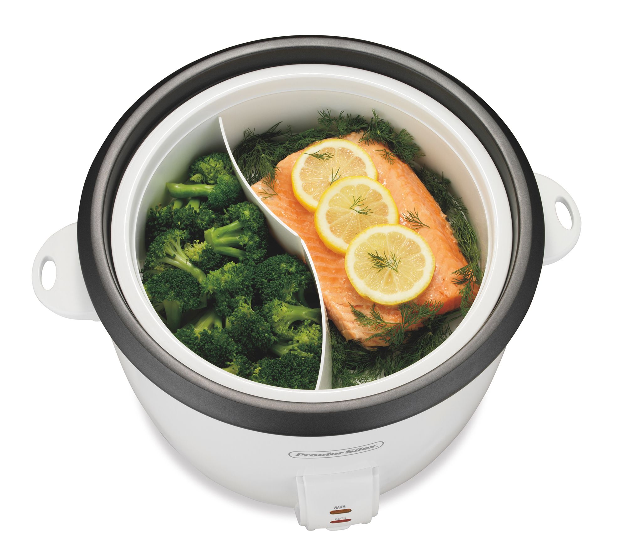 • Steaming basket has removable divider
