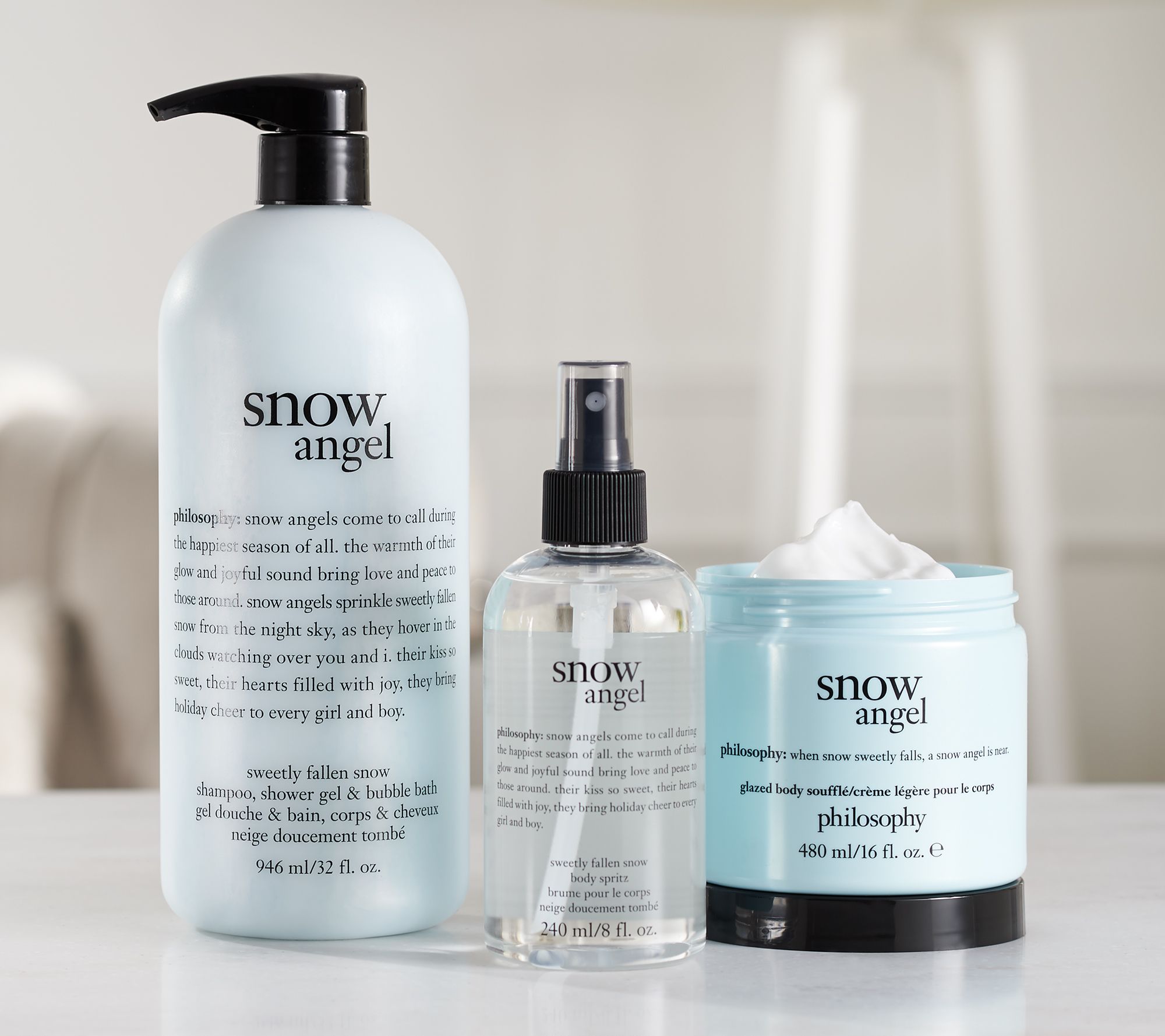 Keep your skin soft, smooth, and smelling delicious! From philosophy, this super-size trio lets you layer your favorite philosophy scents.