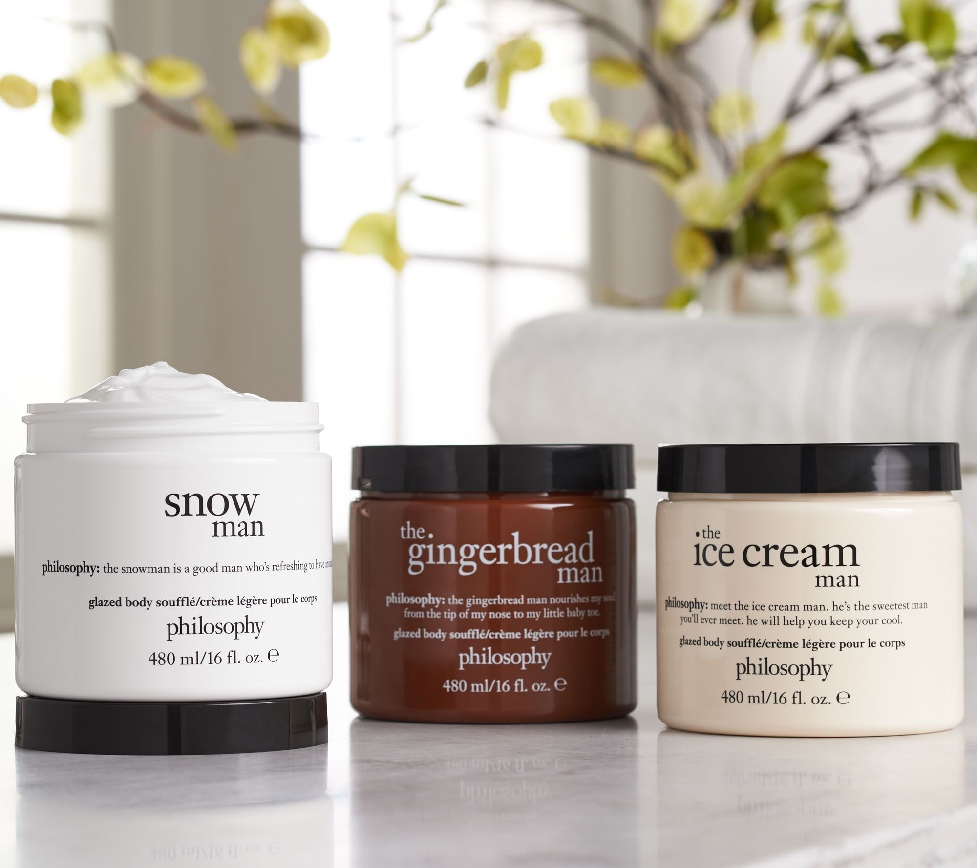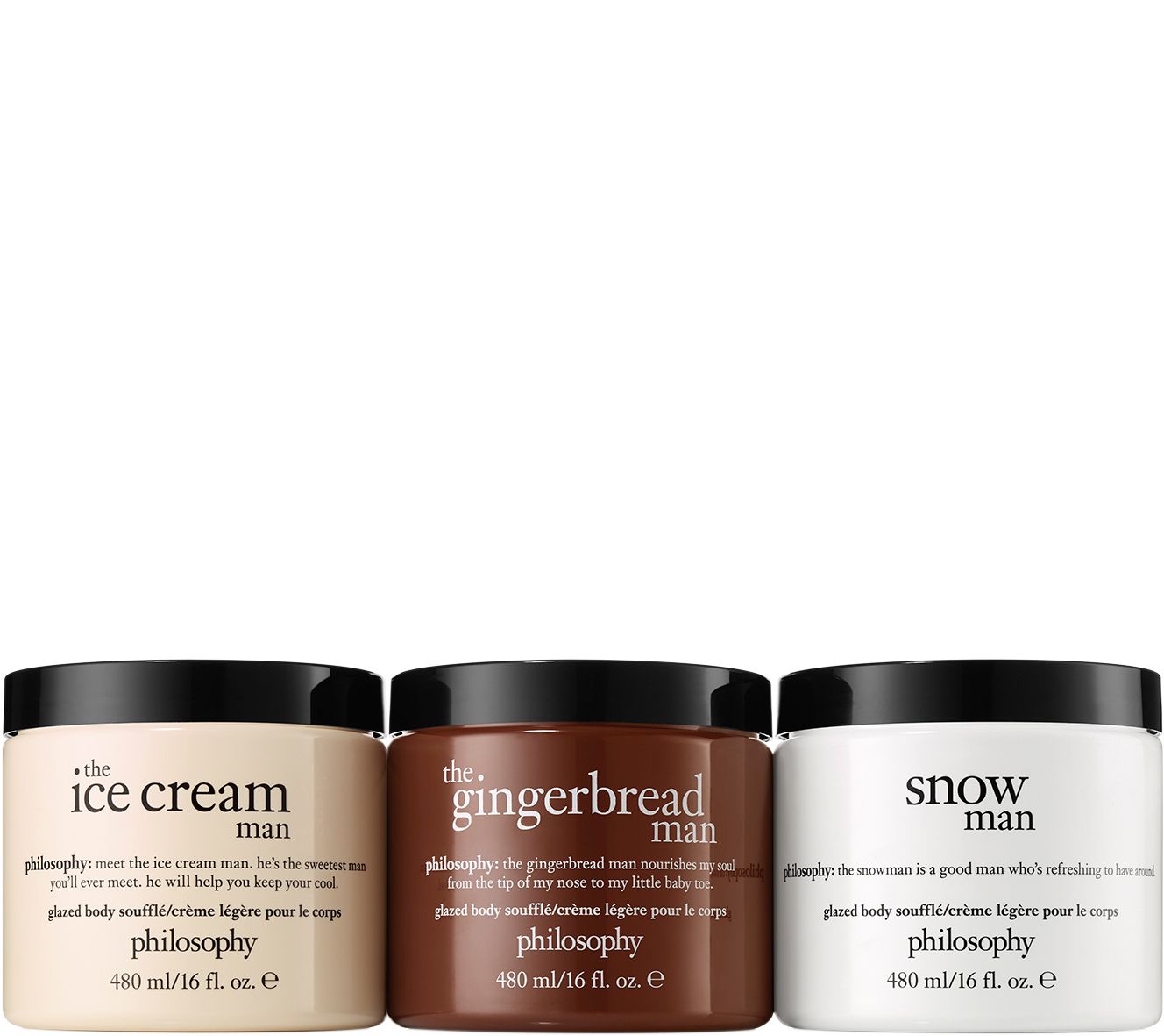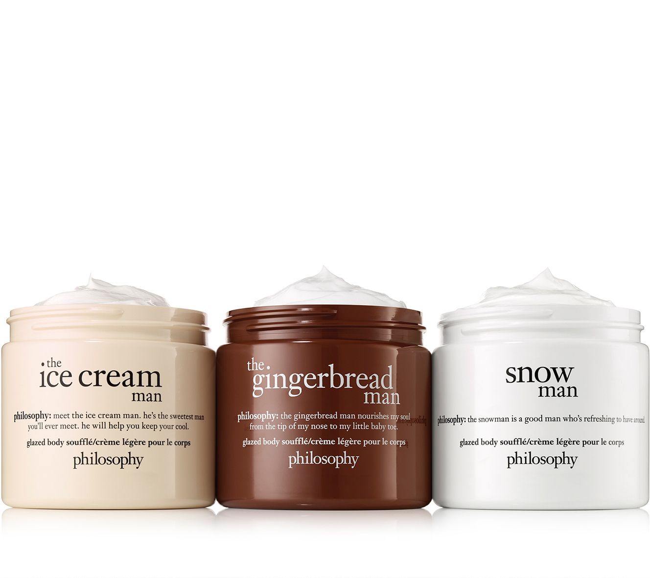 Celebrate the season with your three favorite philosophy men. For skin that feels comforted, soft, and smooth, each ultra-moisturizing glazed body souffle soothes dry, depleted skin with a unique blend of ingredients in your favorite holiday scents.