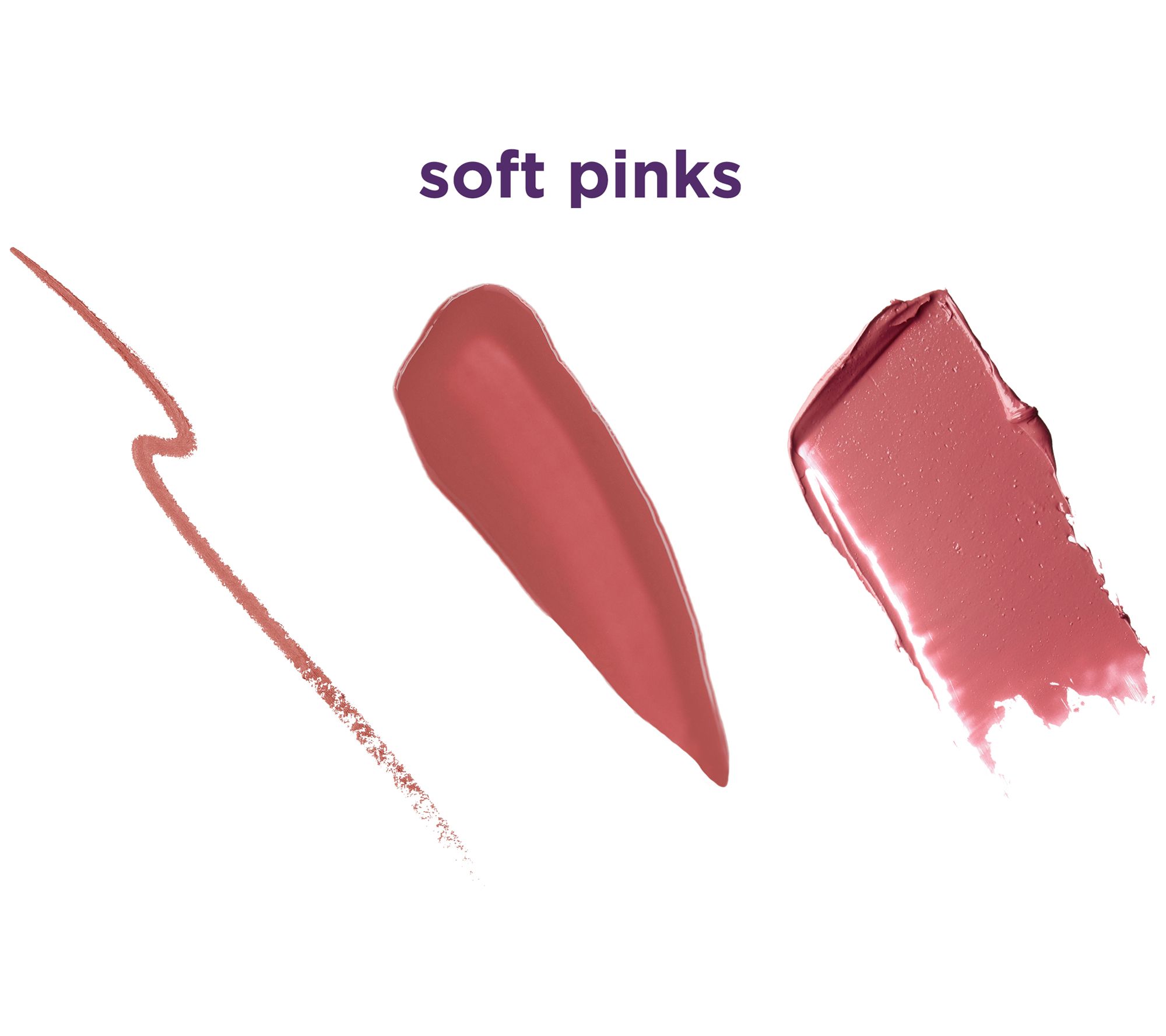 Pinks: liner in Soft Pink, gloss in Hang Ten, and lipstick in Set Sail