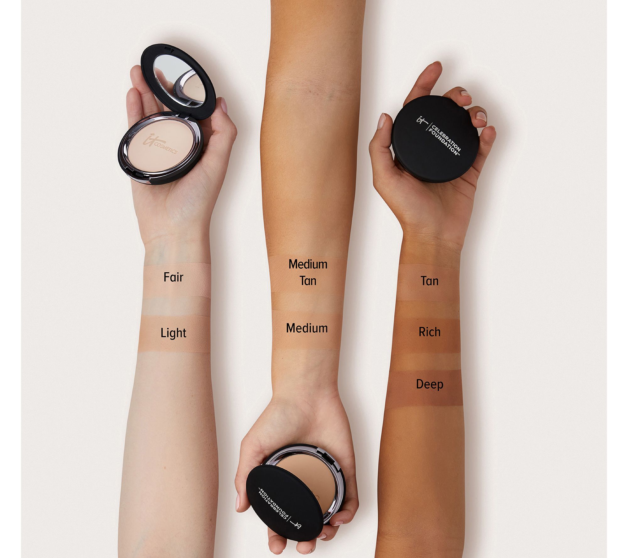 Celebration Foundation is your full-coverage, hydrating powder foundation. Formulated with peptides, hydrolyzed collagen, silk, and antioxidants, Celebration Foundation delivers highly pigmented coverage that erases the appearance of skin concerns, including hyperpigmentation, redness, dark circles, and visible pores. It won't crease or crack and is designed to smooth the look of your skin. Talc-free and skin-loving Celebration Foundation blurs the appearance of skin-imperfections to reveal the look of younger-looking skin when you wear it.
