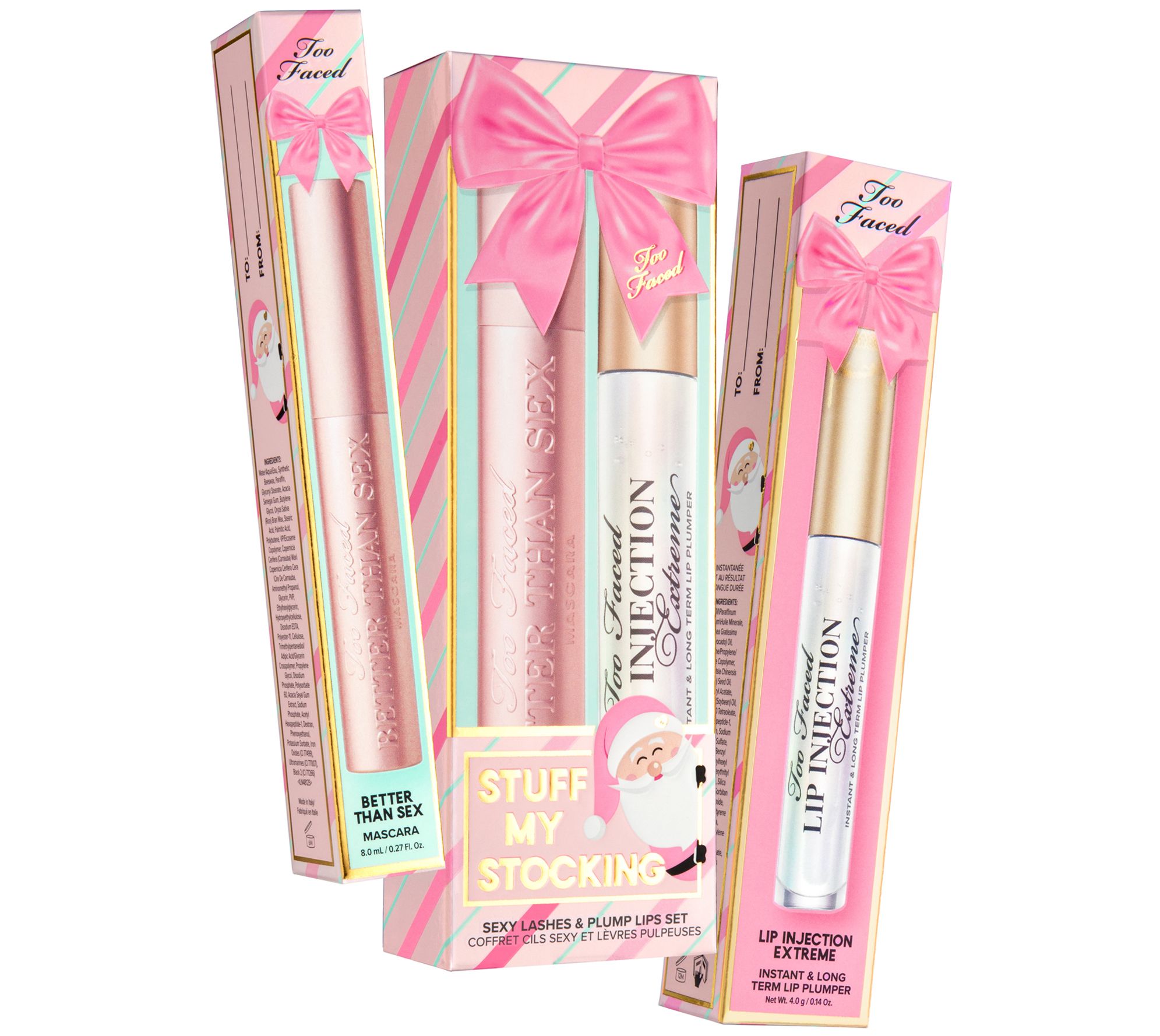 Ready to fall in love with your lashes and plump the look of your lips? It's easy when you have Better Than Sex Volumizing Mascara and Lip Injection Plumping Lip Gloss at your fingertips! Keep this set for yourself or give them as gifts -- they come in a break-away package that's totally genius! Better Than Sex Mascara conditions lashes. The hourglass-shaped brush helps coat every lash. Lip Injection Extreme helps lips appear full and pouty. The clear gloss with light-reflecting shine nourishes and conditions lips.