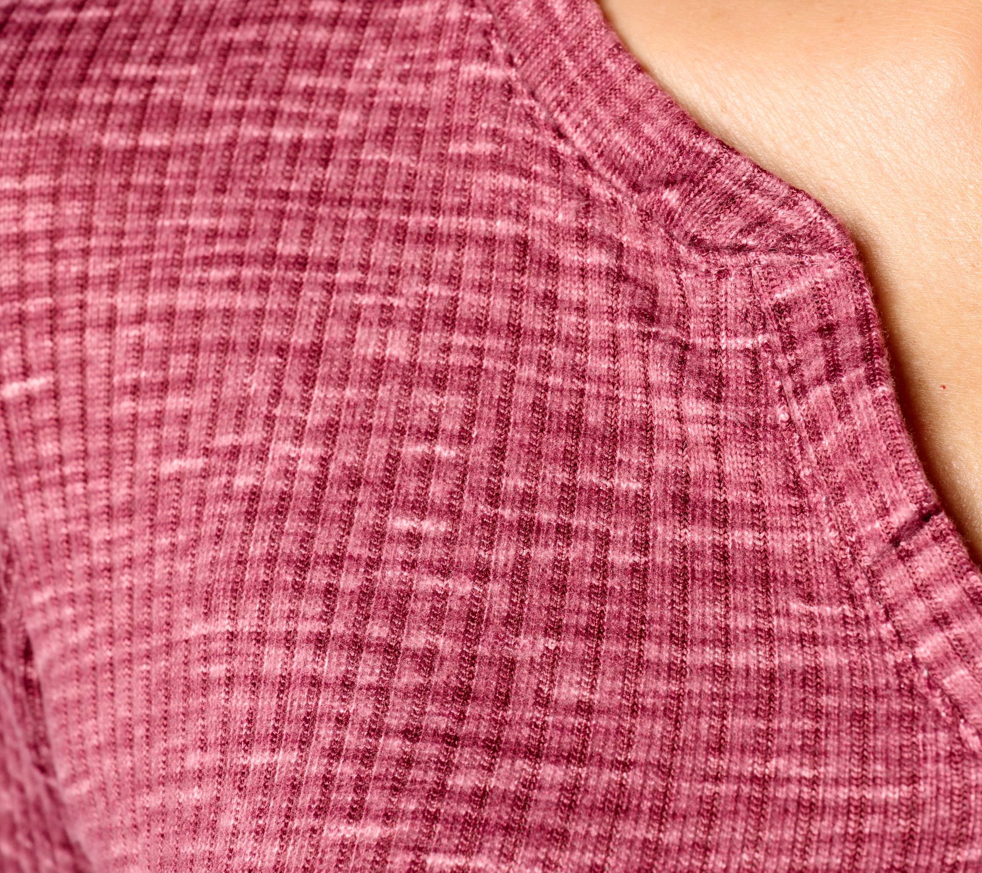 Top Features: split V-neck, long set-in sleeves, ribbed