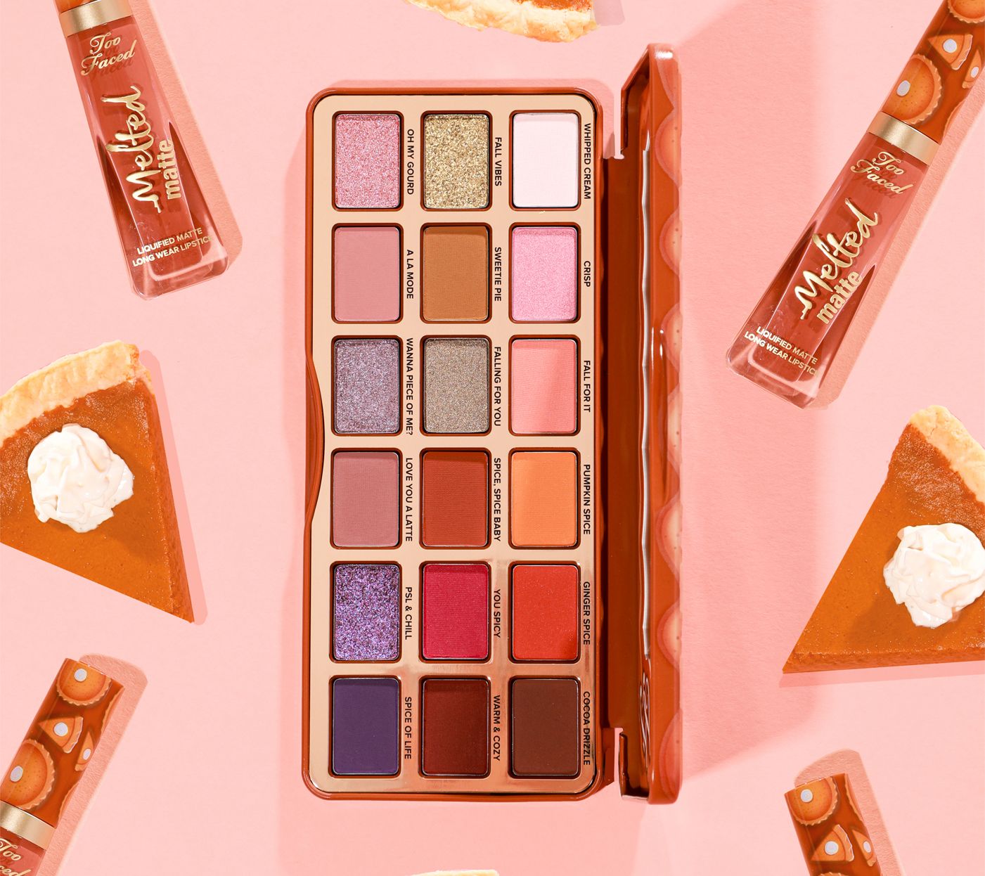 Capture all the fall feels with Too Faced's Pumpkin Spice Eye Shadow Palette, baked with 18 scented warm-and-spicy shades that wrap you in the warmth of the season.