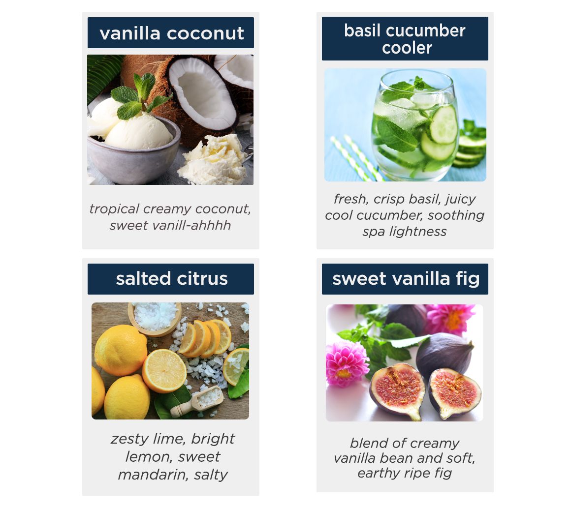 sweet vanilla fig is a blend of creamy vanilla bean and soft, earthy, ripe fig.