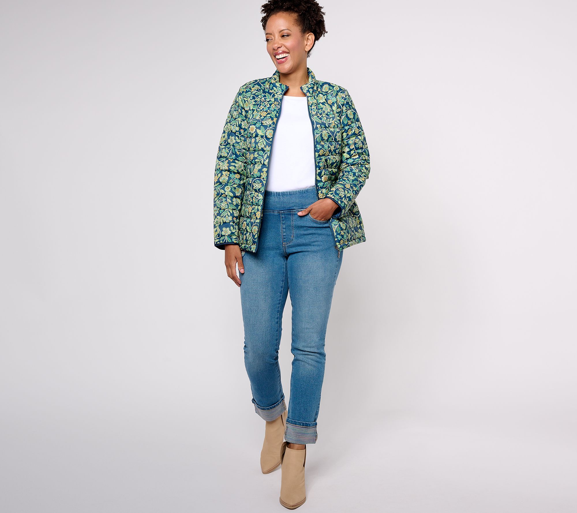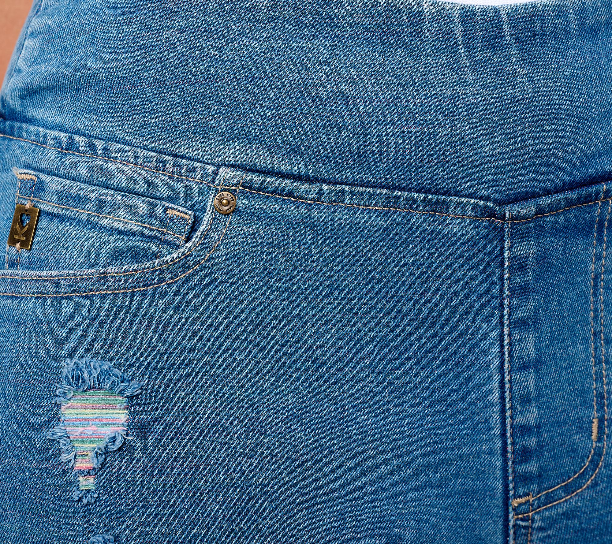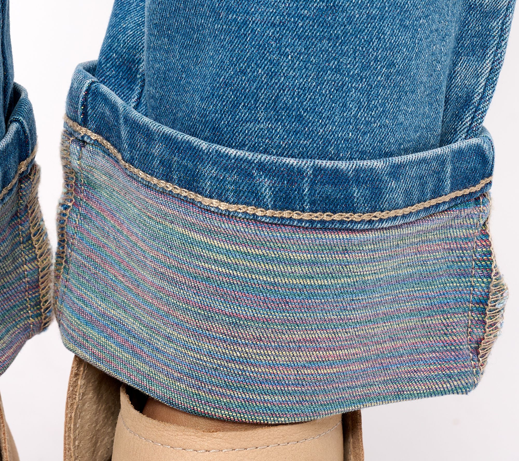 Sure, these jeans have that great fit and feel you've come to love and expect from Kim Gravel. But this denim delights with something extra -- a cuffable leg with rainbow-like striping underneath. (We call that a boho bonus.) From Belle Boho by Kim Gravel.
