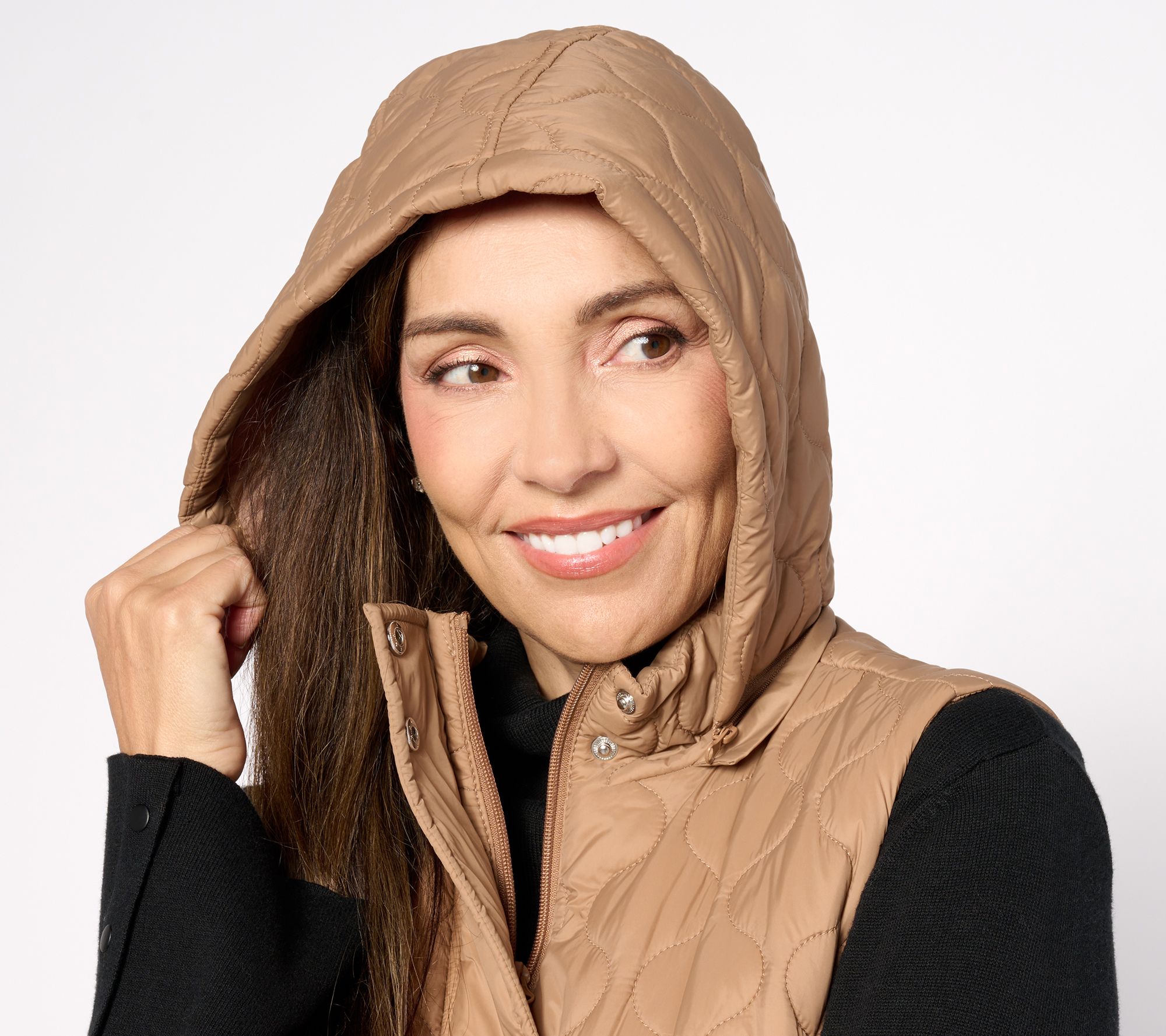 Susan Graver Weekend Petite Water Repellant Nylon Quilted Vest with Hood