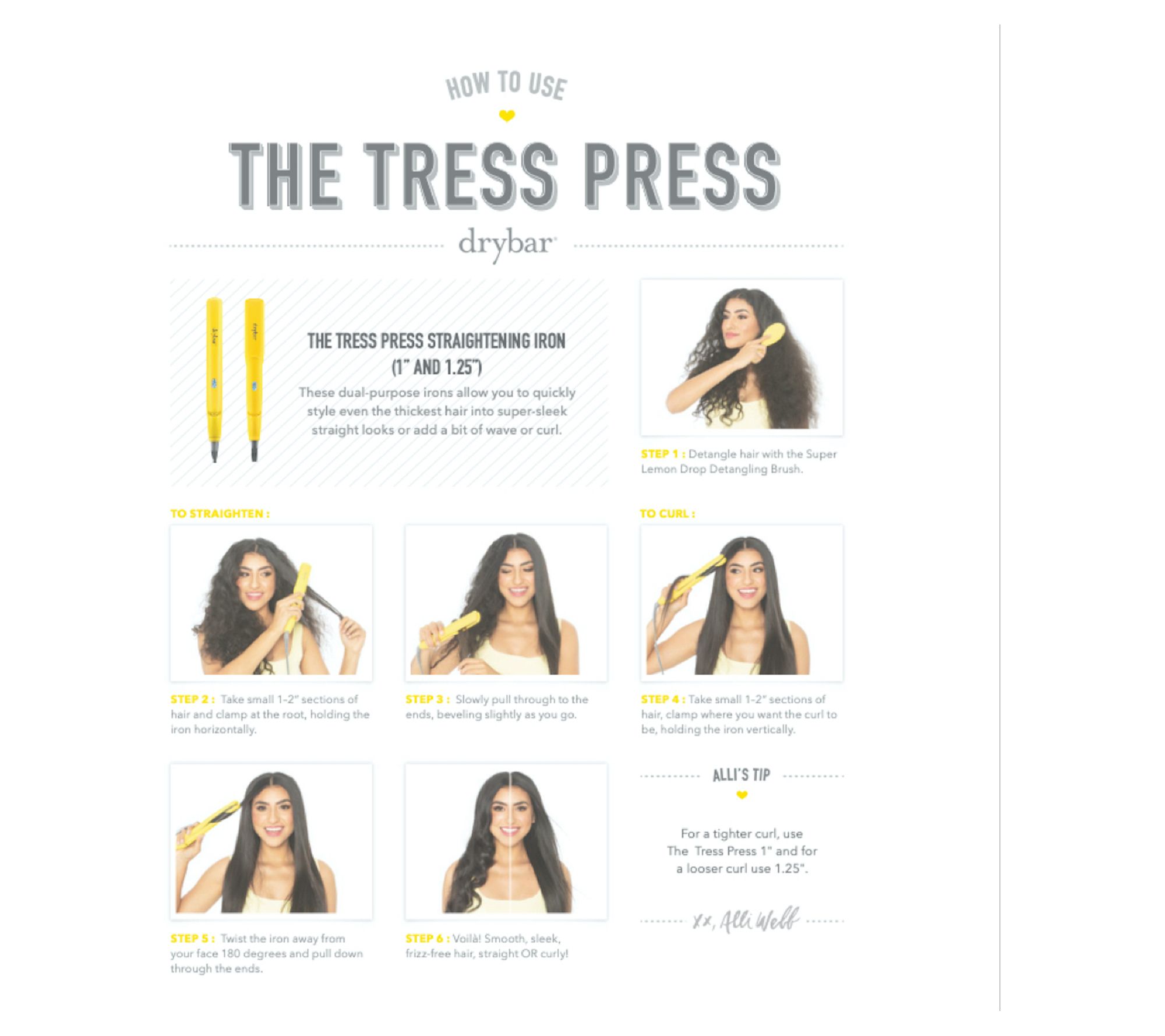 The Tress Press Straightening Iron from Drybar is a dual-purpose iron that allows you to quickly style even the thickest hair into super-sleek straight looks or add a bit of wave or curl. Ionic technology reduces frizz and adds tons of shine while styling. Infrared technology heats hair from the inside out to help maintain healthy locks.
