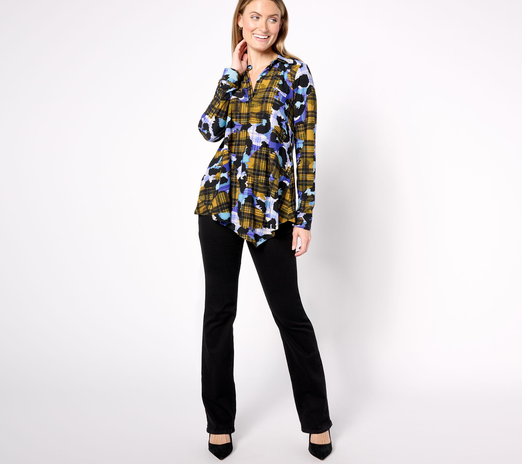Jazz up your wardrobe for any occasion with this lovely tunic. The lovely print and asymmetric hem create a distinctive piece you'll adore. From Women with Control®.
