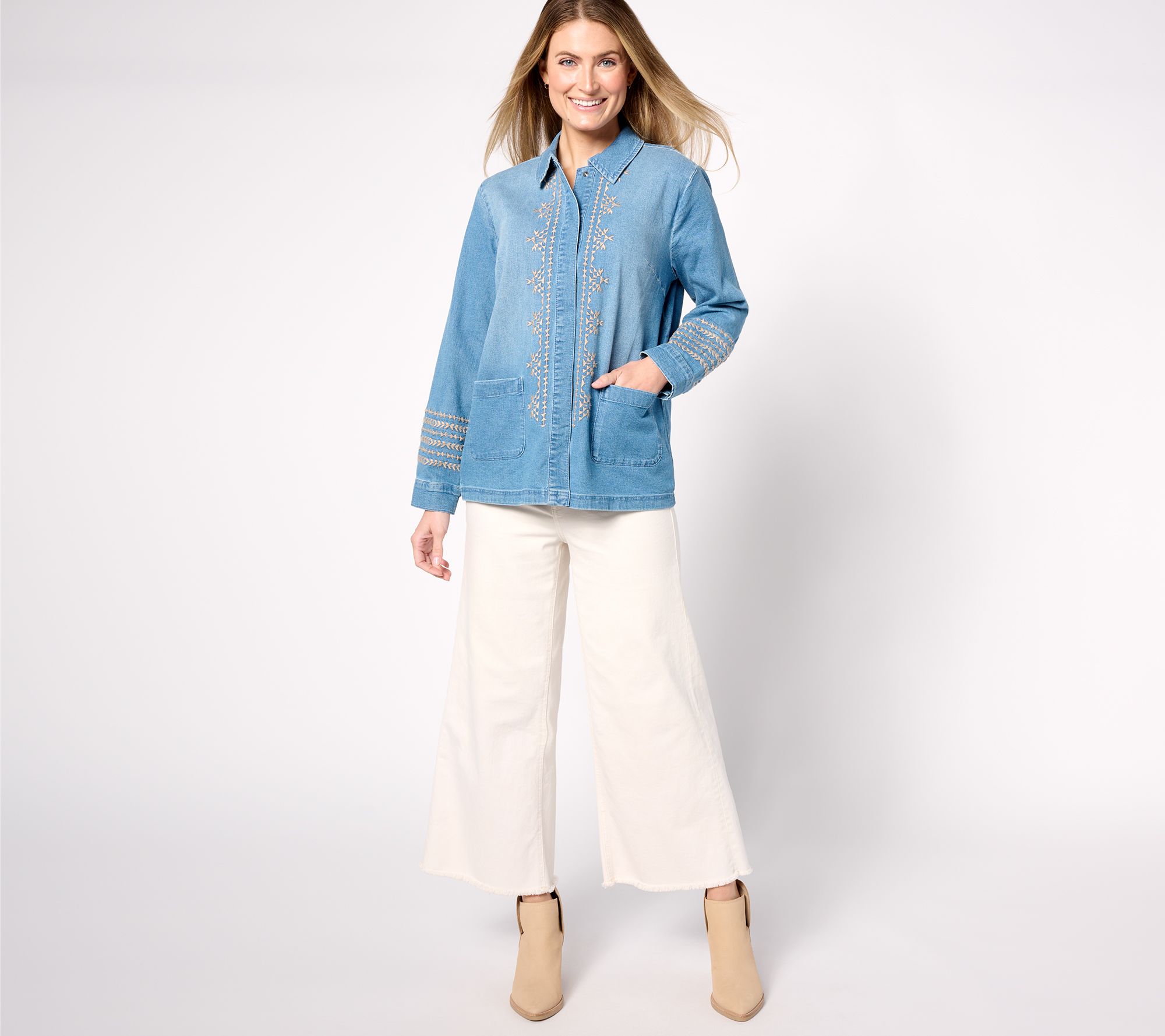 It's always been a staple in our wardrobes -- it just has a name now! The shacket is both shirt and jacket, and this snap-front denim find catches our eye with western-inspired embroidery. Layer it over tanks and tees or don it alone. Either way, snap one up! From Canyon RetreatTM.