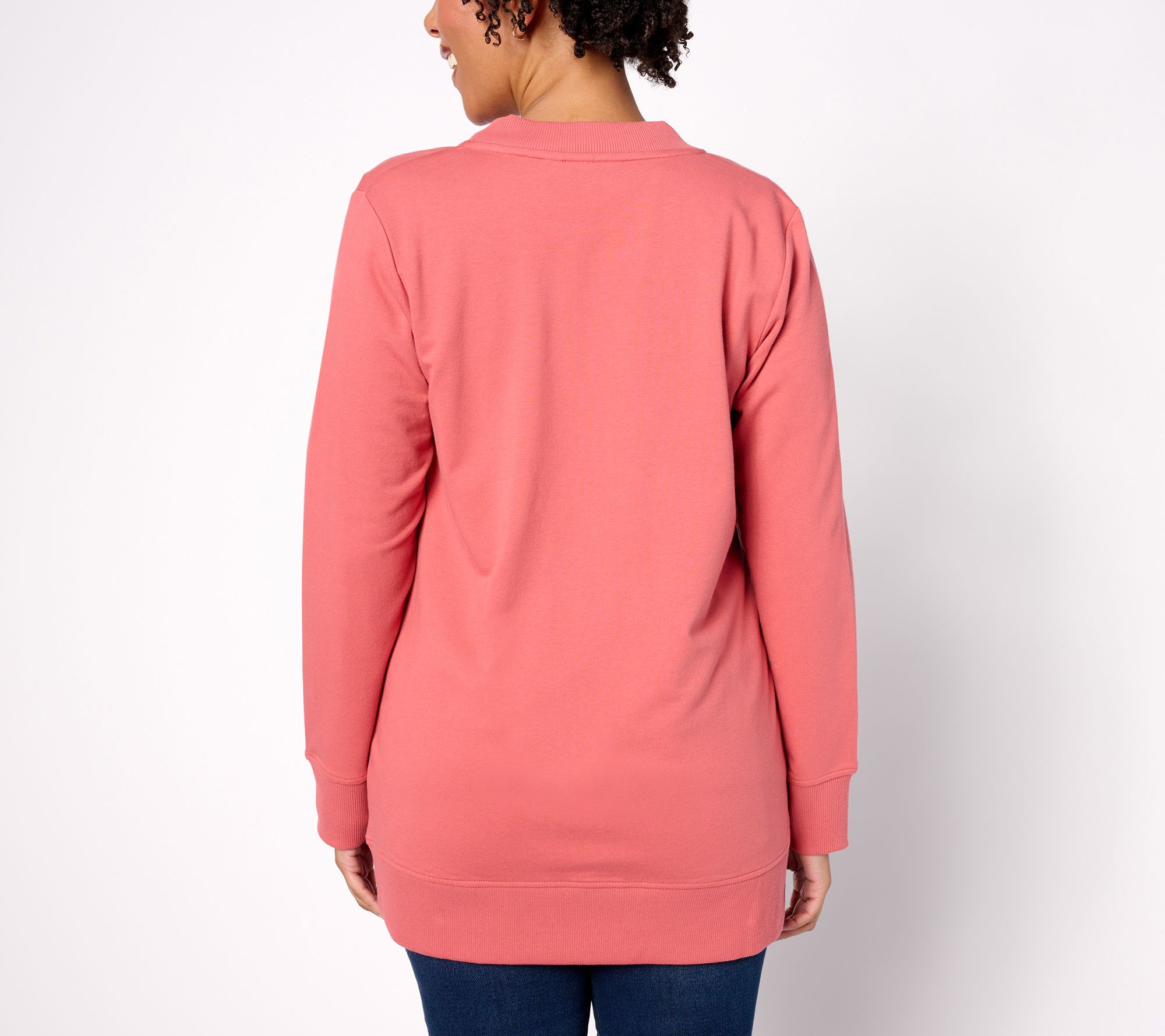 Denim & Co. Active Regular French Terry Tunic Jacket w/ Ribbed Trim