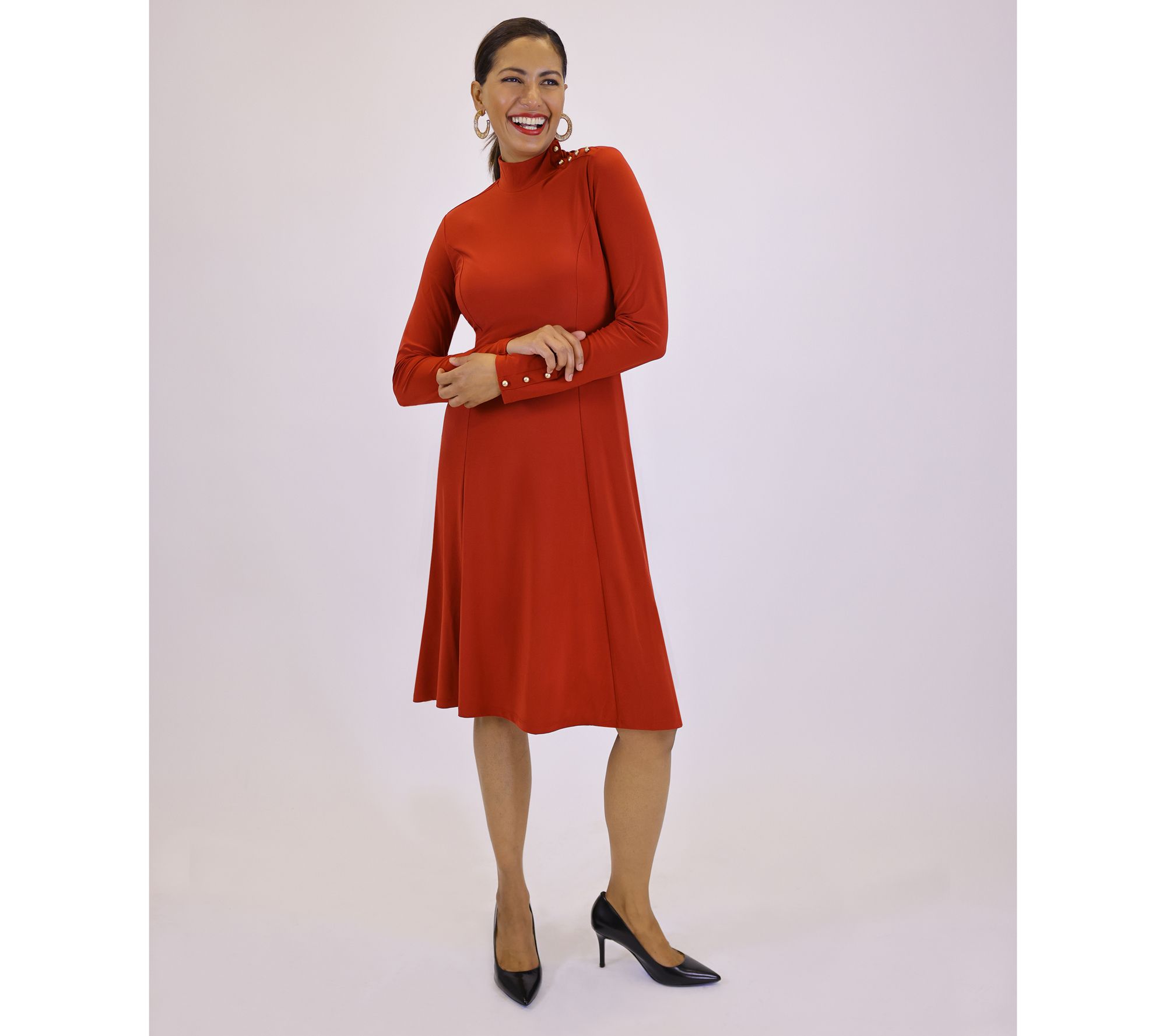Dennis Basso Regular Italia Knit Mock Neck Dress