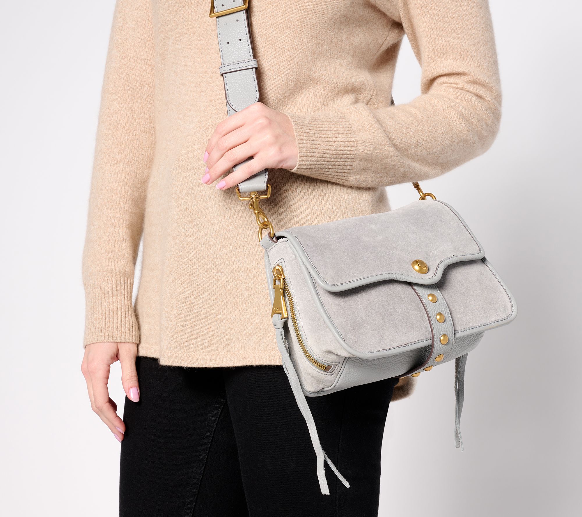 Looking for a break from the basics? This standout suede crossbody boasts beautiful embellishments to give any outfit a fab finishing touch. From Aimee Kestenberg.