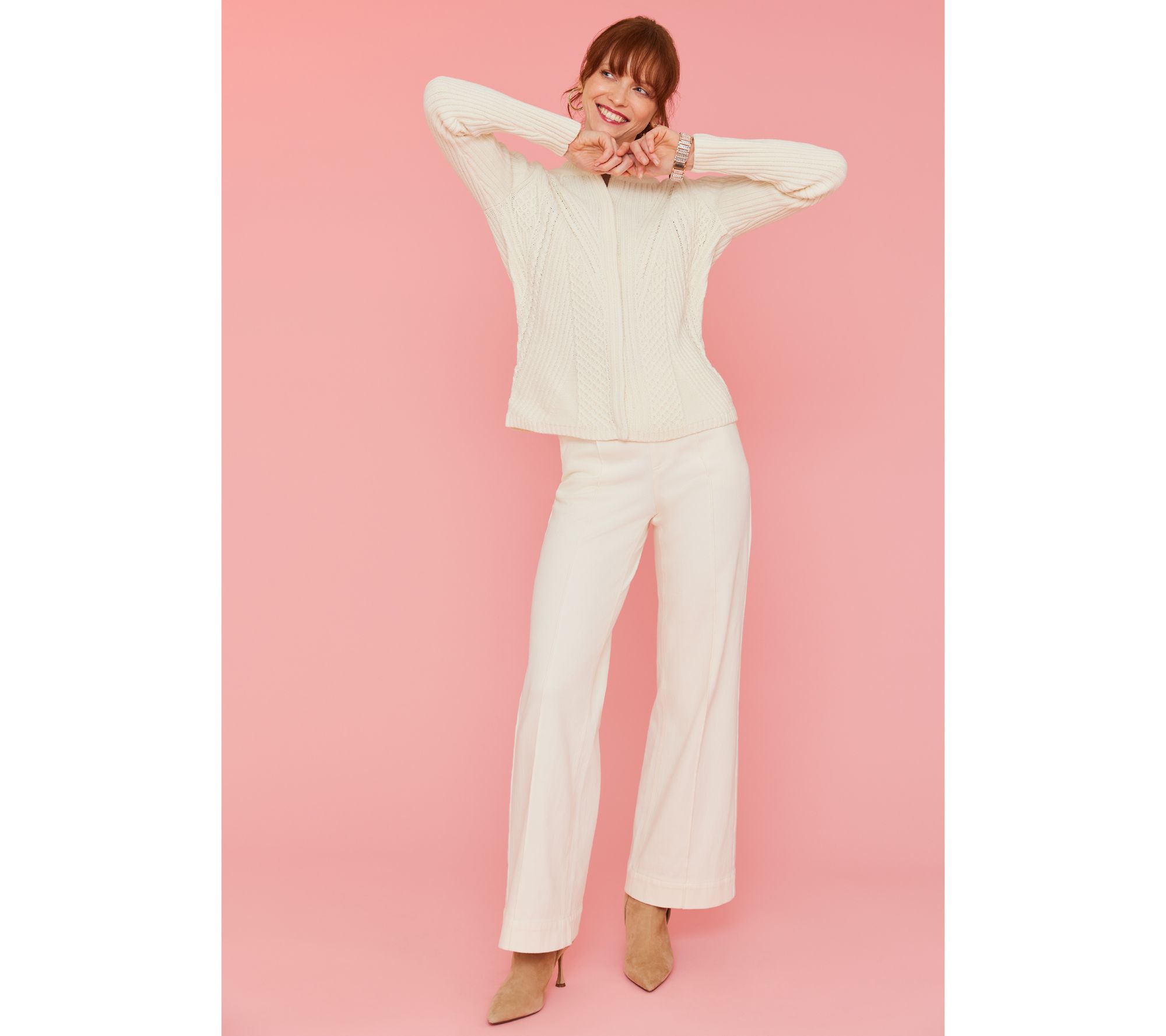 This isn't just any cardi -- Isaac's cable knit sweater is an outfit completer! Worn casually unbuttoned, it becomes your so-fab second layer. A hidden front-button placket allows you to close it all up and command attention as a single-layer sweater, too. How sweet! From Isaac Mizrahi Live!TM.