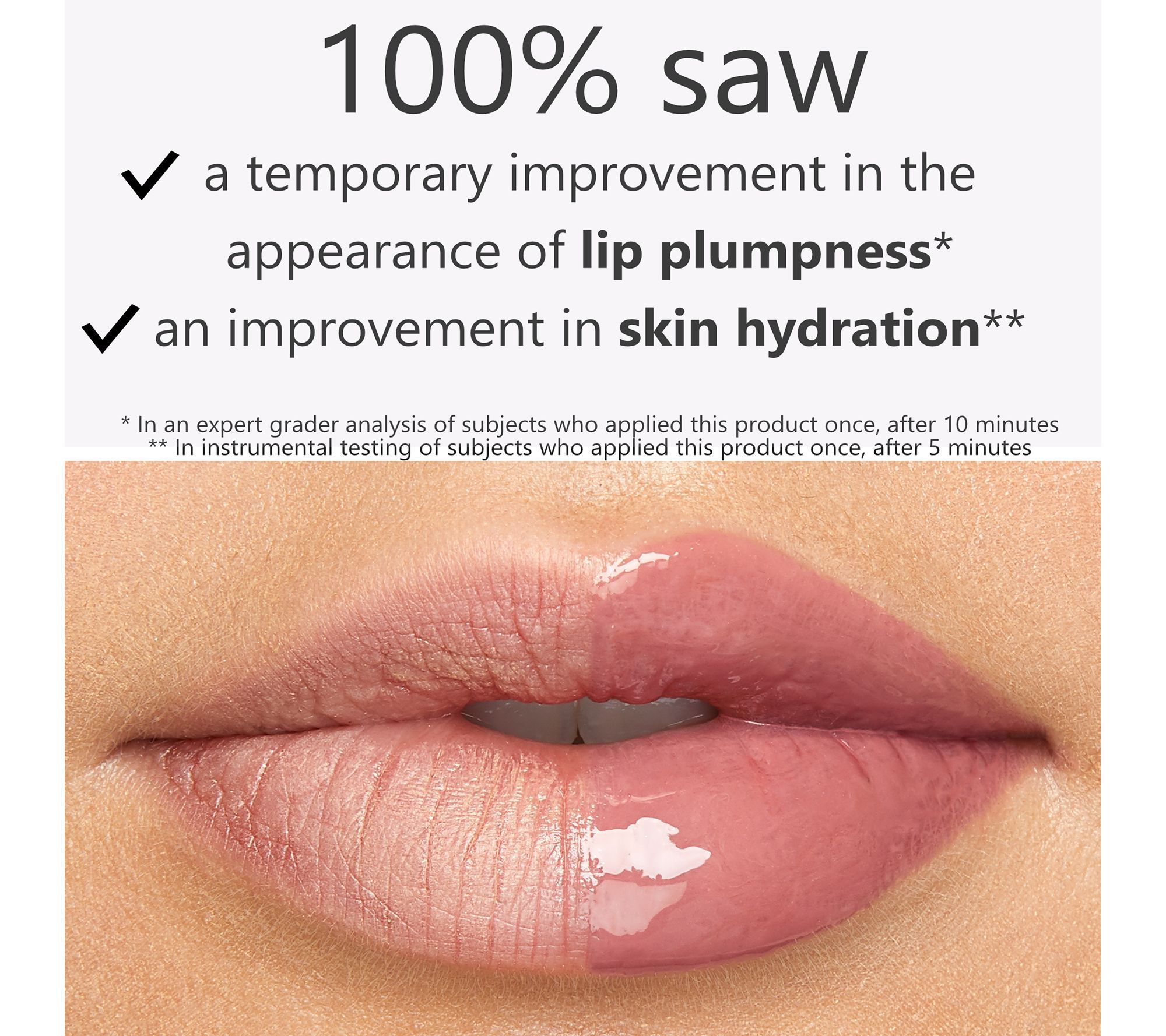 In an expert grader analysis of subjects who applied this product once, after 10 minutes 91% of subjects showed a temporary improvement in the appearance of lip plumping.