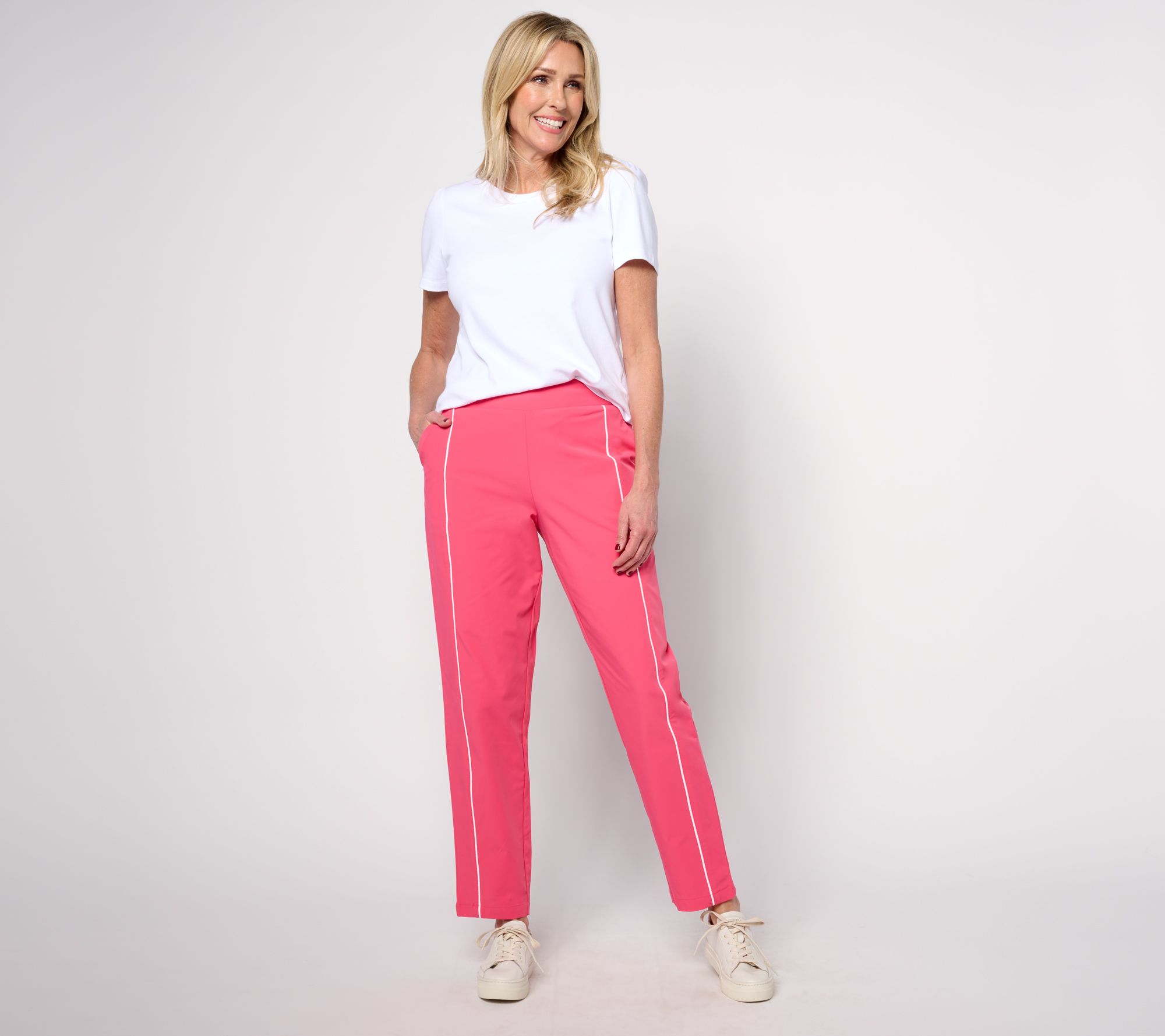 Level up your athleisure game with Isaac's Stretch Tech pants than can go from the ninth hole to your favorite watering hole without ever feeling off your game. From Isaac Mizrahi Live!TM.